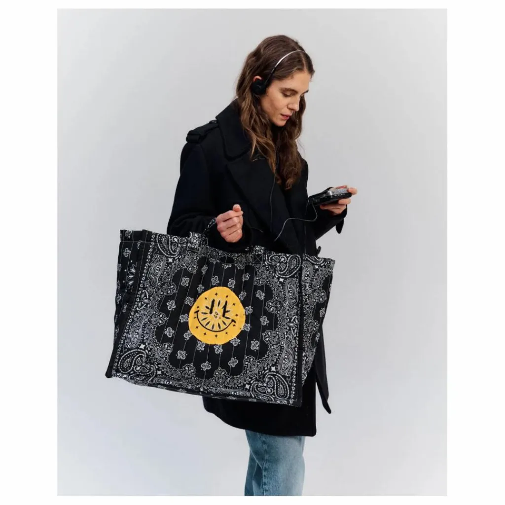 - Avec 4 anses, vous pourrez à la fois porter votre sac à l’épaule et à la main. ous nos sacs et accessoires sont réversibles avec une doublure intérieure, réalisée en bandanas pour vous permettre de les porter de différentes façons.