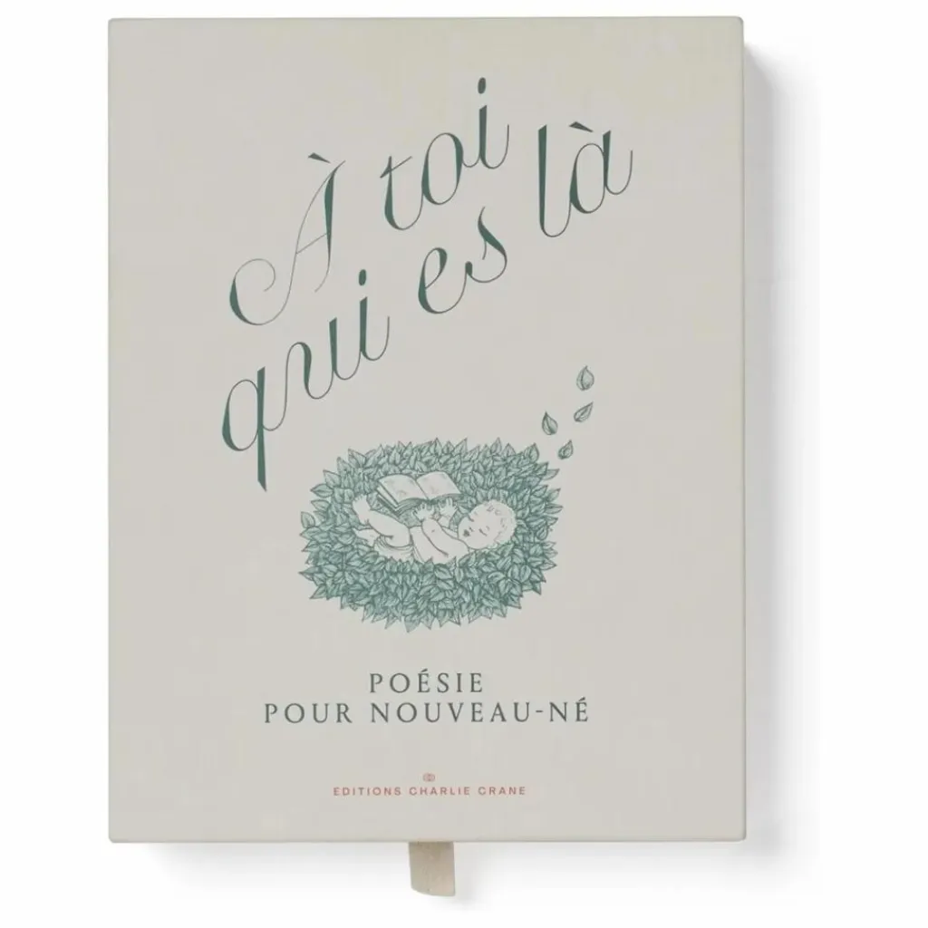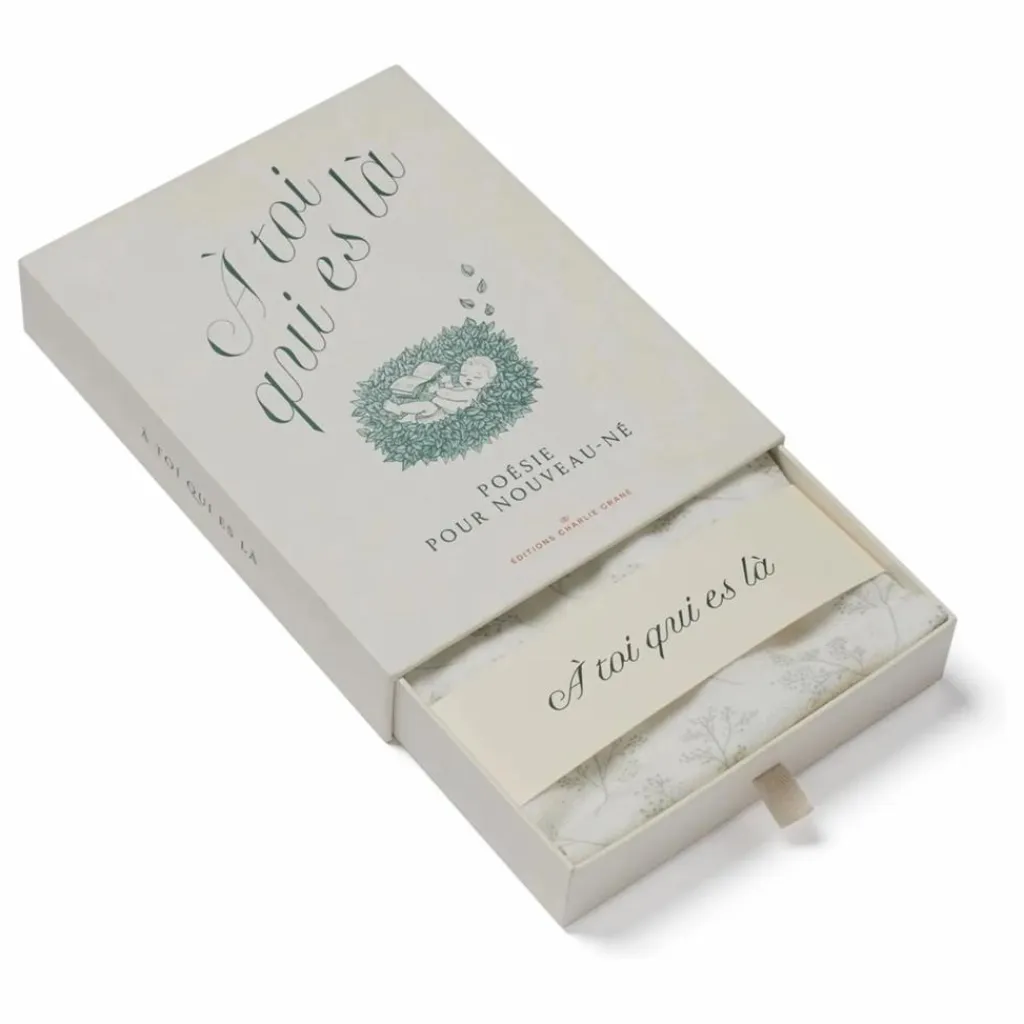 Les Éditions Charlie Crane proposent un cadeau de naissance émouvant : un lange en gaze de coton biologique imprimé Pearl Blossom, accompagné du recueil À toi qui es là, contenant 30 poèmes inédits écrits par 21 poètes spécialement pour cette édition.