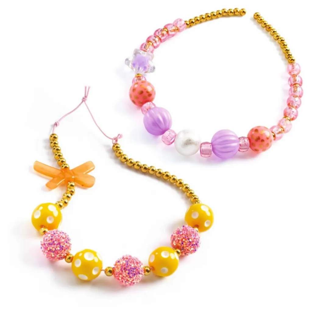 - Un coffret contenant plus de 200 perles pour créer 5 colliers aux reflets dorés. Un assortiment de couleurs bien pensé pour un résultat toujours harmonieux. Petits et grands seront ravis de les porter !