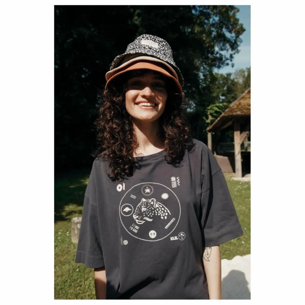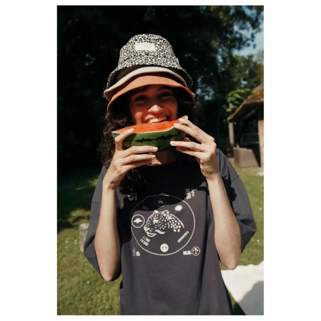 - Bob en coton léopard noir et noir. Souple et léger, il est entièrement doublé en coton. Un accessoire pratique et élégant, idéal pour les journées ensoleillées.
