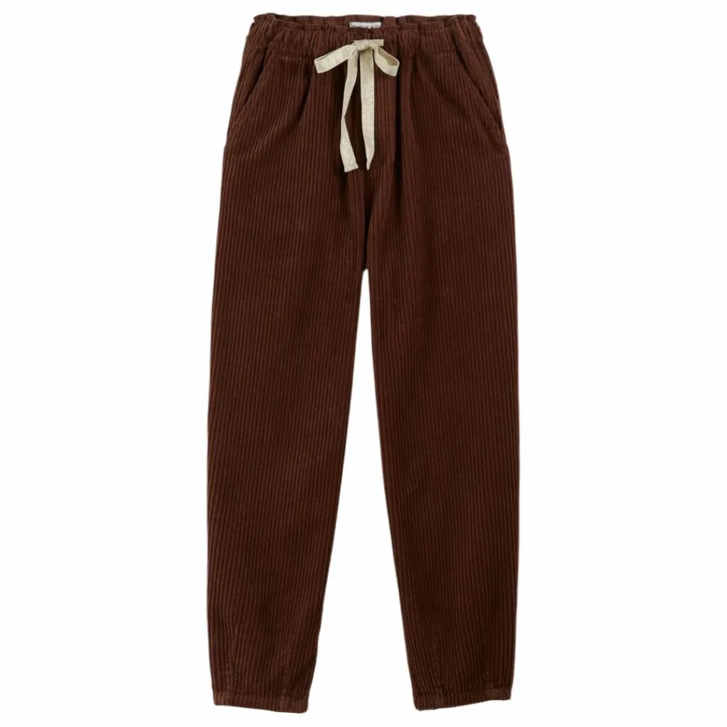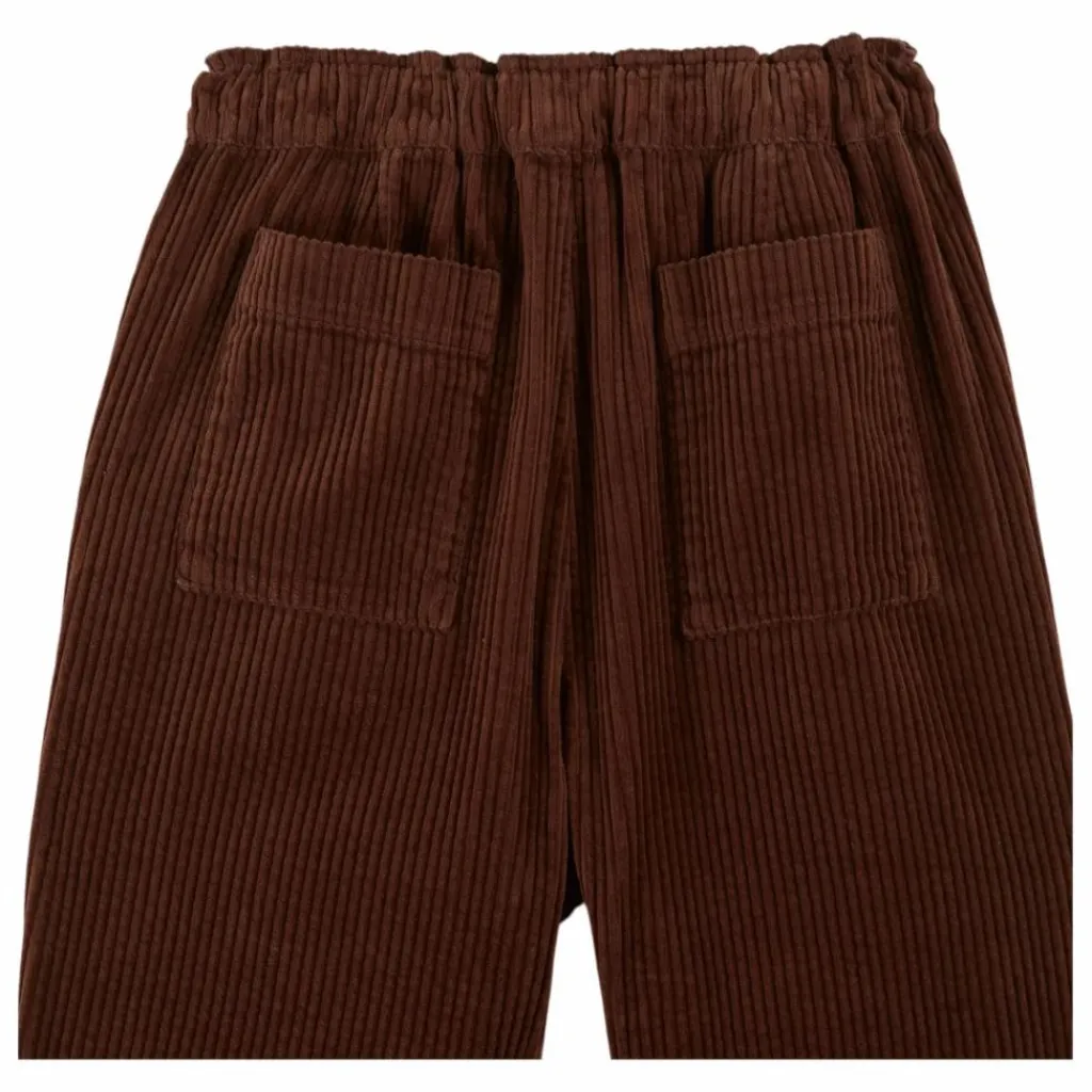 - Pantalon bleu banquise en velours de coton à grosses côtes.