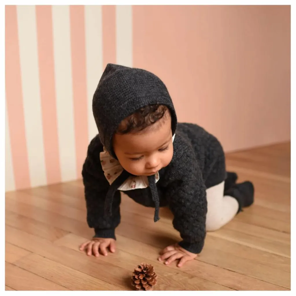 - Une jolie barboteuse à manches longues en maille 100% pour tenir bébé bien au chaud cet hiver. On adore sa finition en point texturé et sa jolie torsade sur le devant. Pratique et confortable elle s’ouvre au dos et à l’entre jambes avec des boutons pressions. En laine certifiée RWS