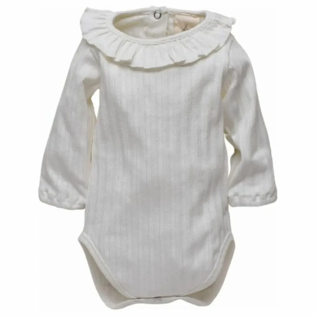 Retrouvez cette saison chez Lililotte le body Alba. Il sera parfait pour cet hiver dans sa maille bien épaisse et confortable coloris blanc. Alba en maille pointelle blanche s’associera à la perfection avec l’ensemble de notre collection bébé.