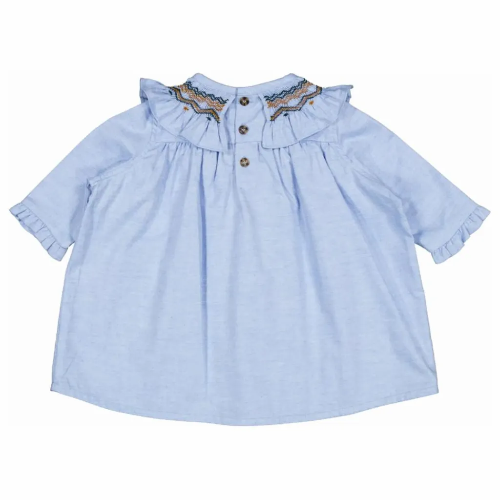 - SIBYLLE est une robe à col volanté et smocké et des manches longues aux poignets élastiqués.