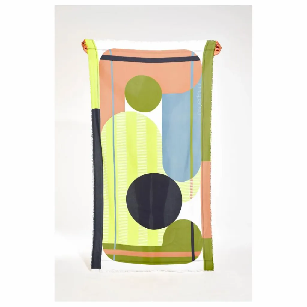- Drap de plage aux motifs courbes qui s’enchevêtrent.