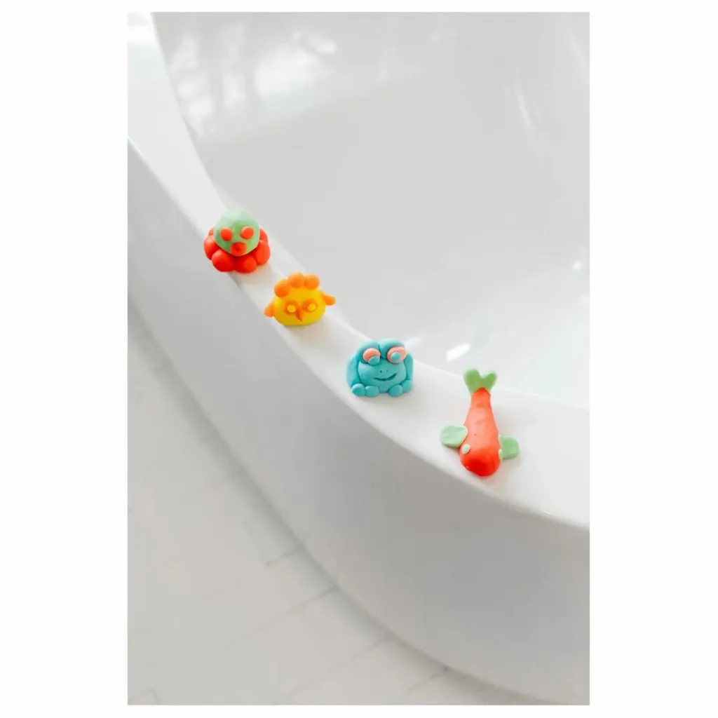 Pour un bain amusant : Placez une petite quantité de pâte dans Ploofy et utilisez le poussoir pour créer des formes directement dans l’eau du bain. Chaque bain devient une nouvelle aventure. »