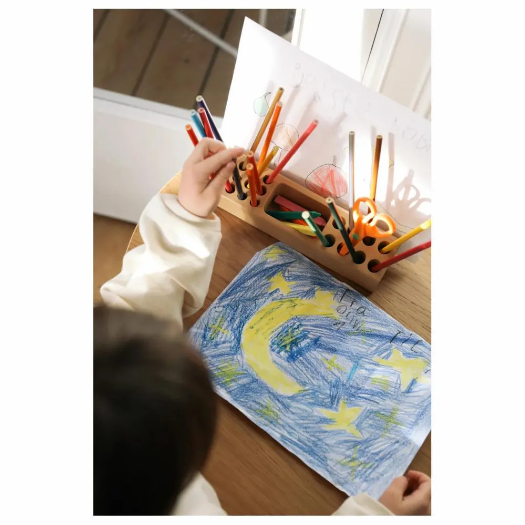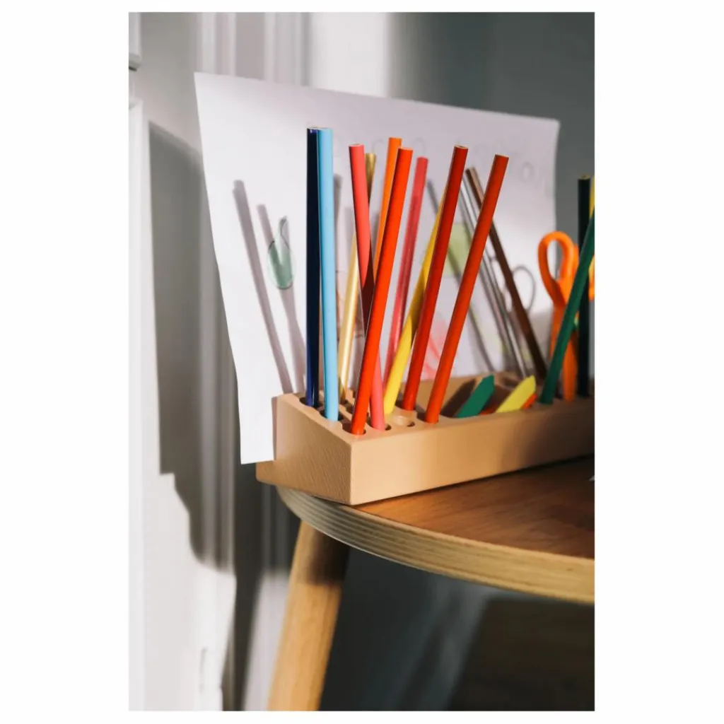 Rangez vos outils de dessin et d’écriture préférés dans ce joli porte-crayon en bois.