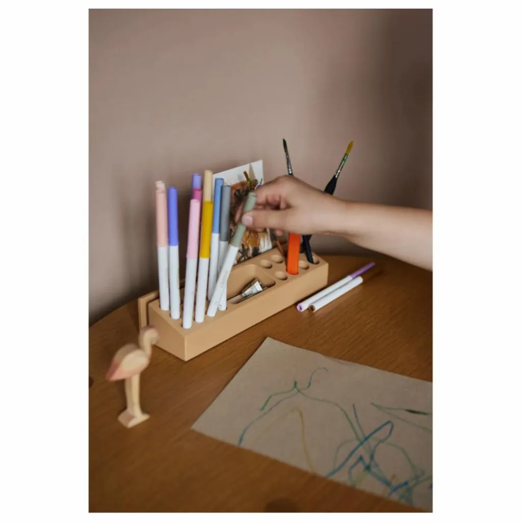 - 1 porte-crayon, Plusieurs compartiments pour ranger des pinceaux, des ciseaux, une règle, une gomme, un taille-crayon, un petit bloc-notes etc