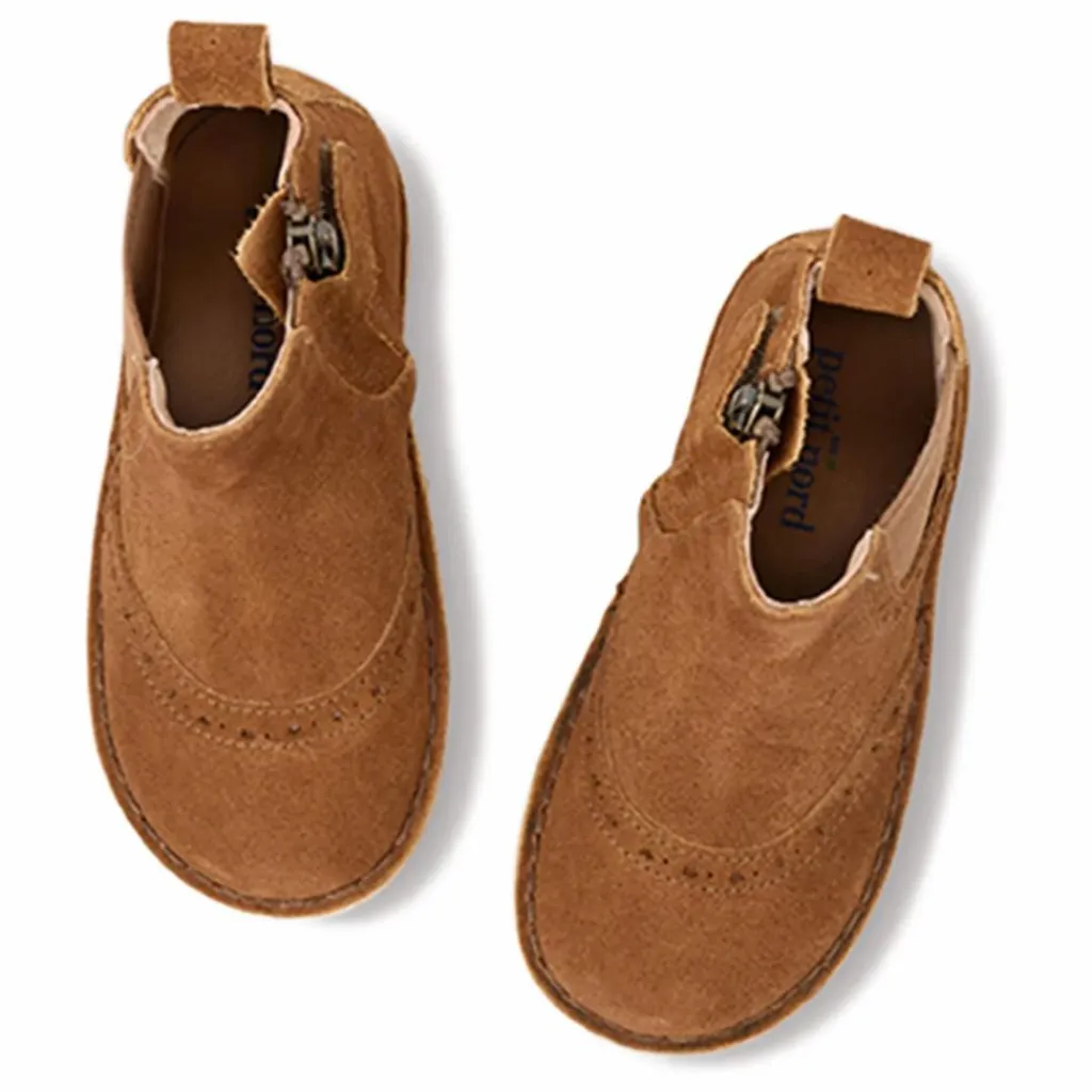 Les bottes sont fabriquées en cuir avec une semelle intérieure naturelle et sans chrome. Les semelles sont flexibles et fabriquées en caoutchouc TR recyclé léger. Une fermeture éclair cachée a été ajoutée pour que les enfants puissent facilement enfiler la botte.