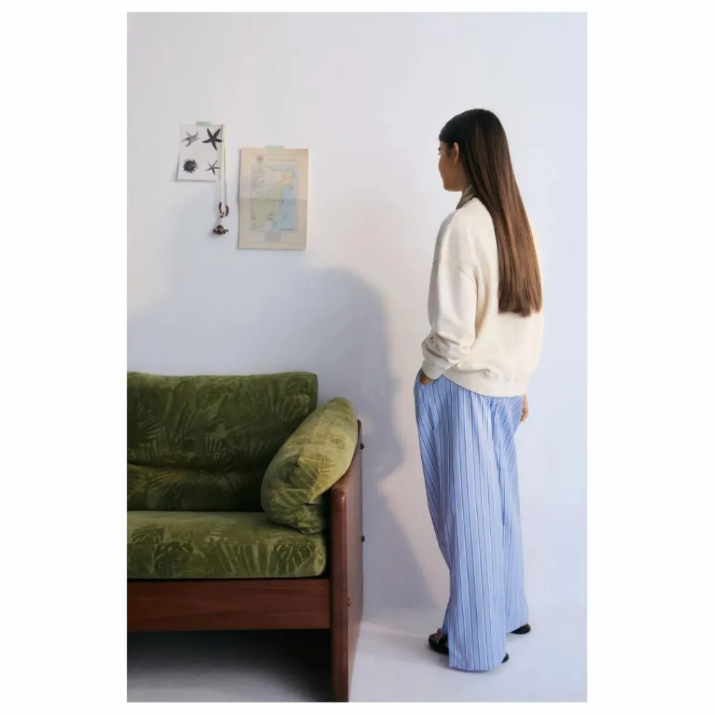 - Pantalon Hebe Teen en tissu rayé 100% coton avec poches latérales et étiquette centrale personnalisée The New Society.
