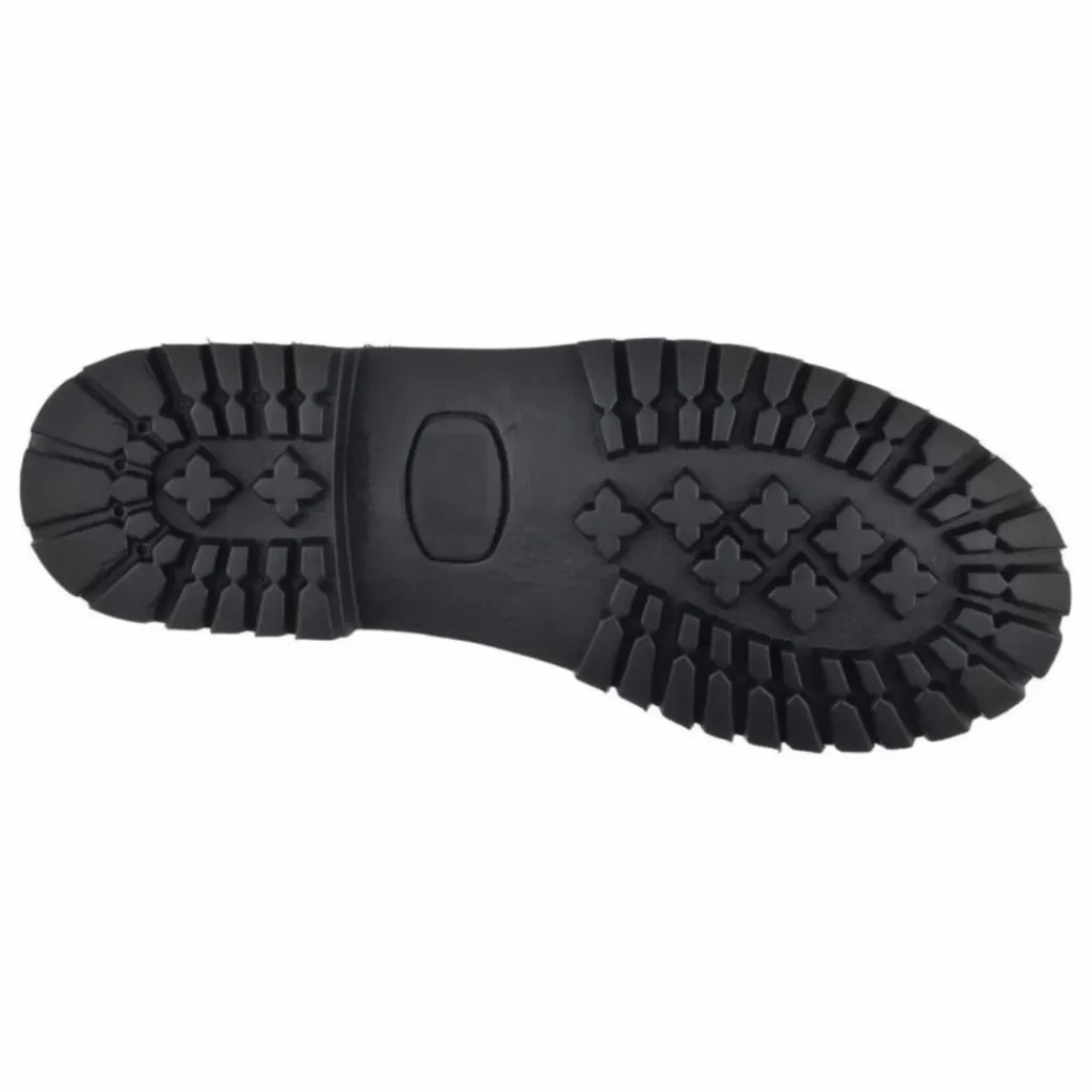 Une épaisse semelle commando en gomme qui garantit la résistance aux intempéries tout en améliorant la stabilité et l’adhérence.
