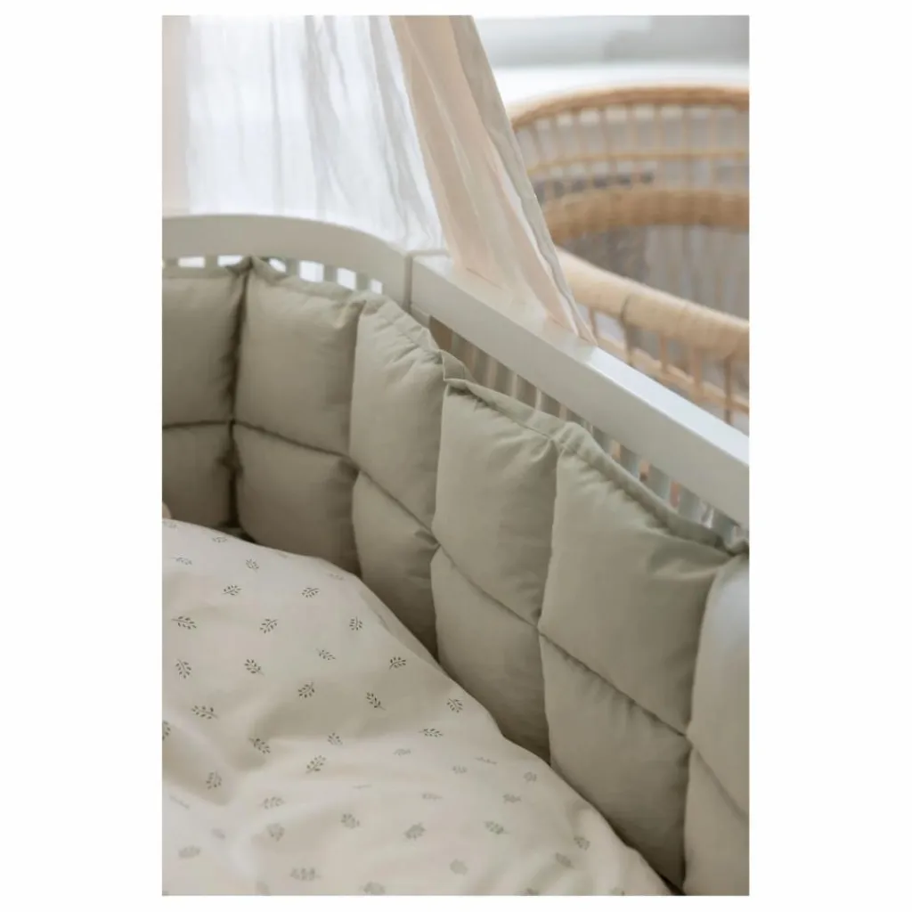 - Décorez votre lit d’enfant avec un tour de lit qui protège votre bébé des bords durs du lit et empêche la tétine de tomber. Le tour de lit Kapok mesure 180 cm de long, soit la moitié de la longueur d’un tour de lit Sebra standard. Il peut être placé à la tête du lit ou le long d’un côté du lit. Les sangles d’attache vous permettent de le fixer en haut et en bas du lit. Le tour de lit est disponible dans plusieurs couleurs et imprimés magnifiques qui peuvent être mélangés et assortis avec la literie, les draps et les baldaquins de Sebra, ce qui vous permet de créer un environnement de sommeil unique et visuellement attrayant pour votre petit. Le kapok est une fibre naturelle douce et soyeuse, dotée d’une substance amère antibactérienne naturelle qui empêche les acariens d’y vivre. Le kapok est donc un matériau idéal pour les personnes souffrant d’allergies. Le kapok est également respirant et régulateur de température. Lorsque vous lavez un produit en kapok, il change toujours un peu. C’est pourquoi nous vous recommandons de le suspendre à l’air libre si vous souhaitez le rafraîchir un peu. S’il y a une tache sur le produit, vous pouvez la nettoyer délicatement pour éviter de mouiller tout le produit. Si le lavage de votre produit en kapok est inévitable, il est essentiel de suivre les instructions suivantes.