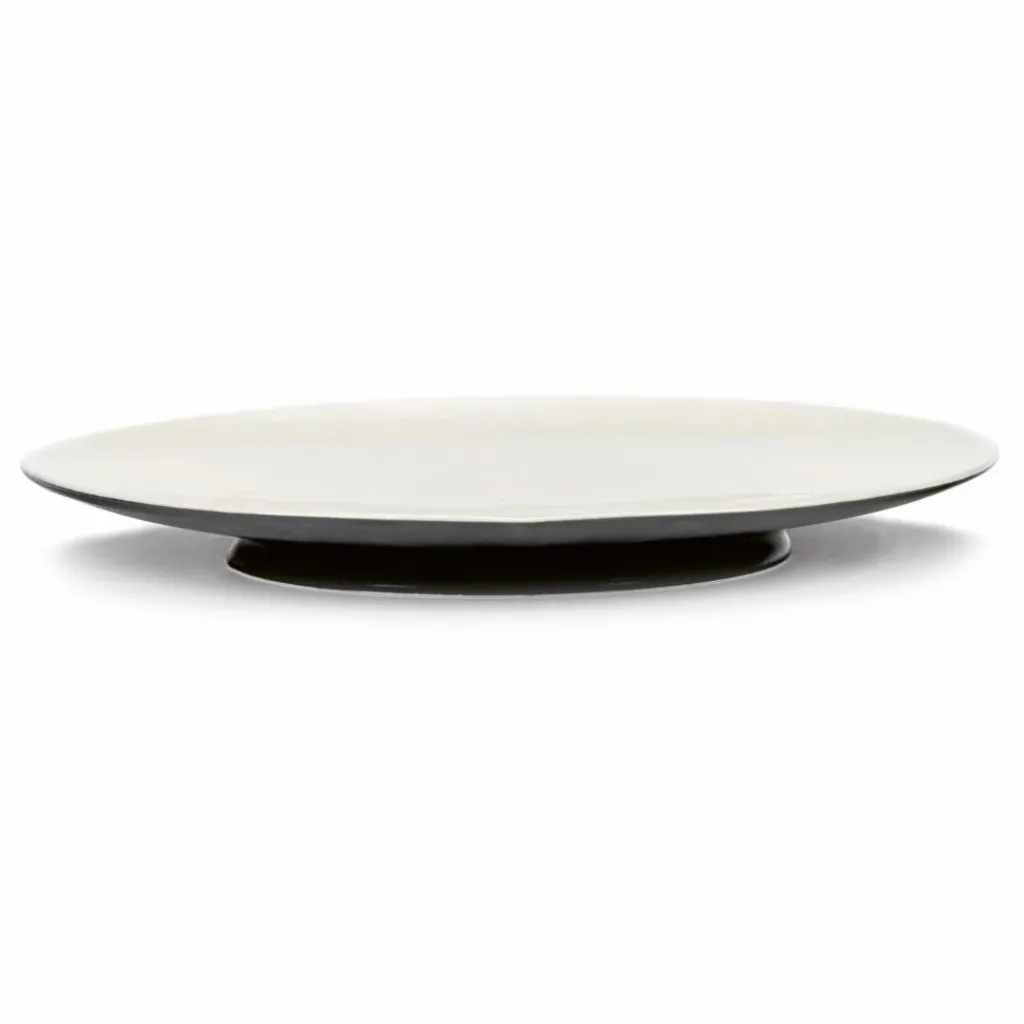 Les fines assiettes de la collection Ra reposent sur un socle et élèvent ainsi littéralement les mets qui y sont servis. La version en émail noir mat pour l’extérieur et émail blanc cassé brillant pour l’intérieur reprend l’idée du contraste entre mat et brillant, mais aussi de l’opposition entre noir et blanc qui sont typiques du style Ann Demeulemeester.