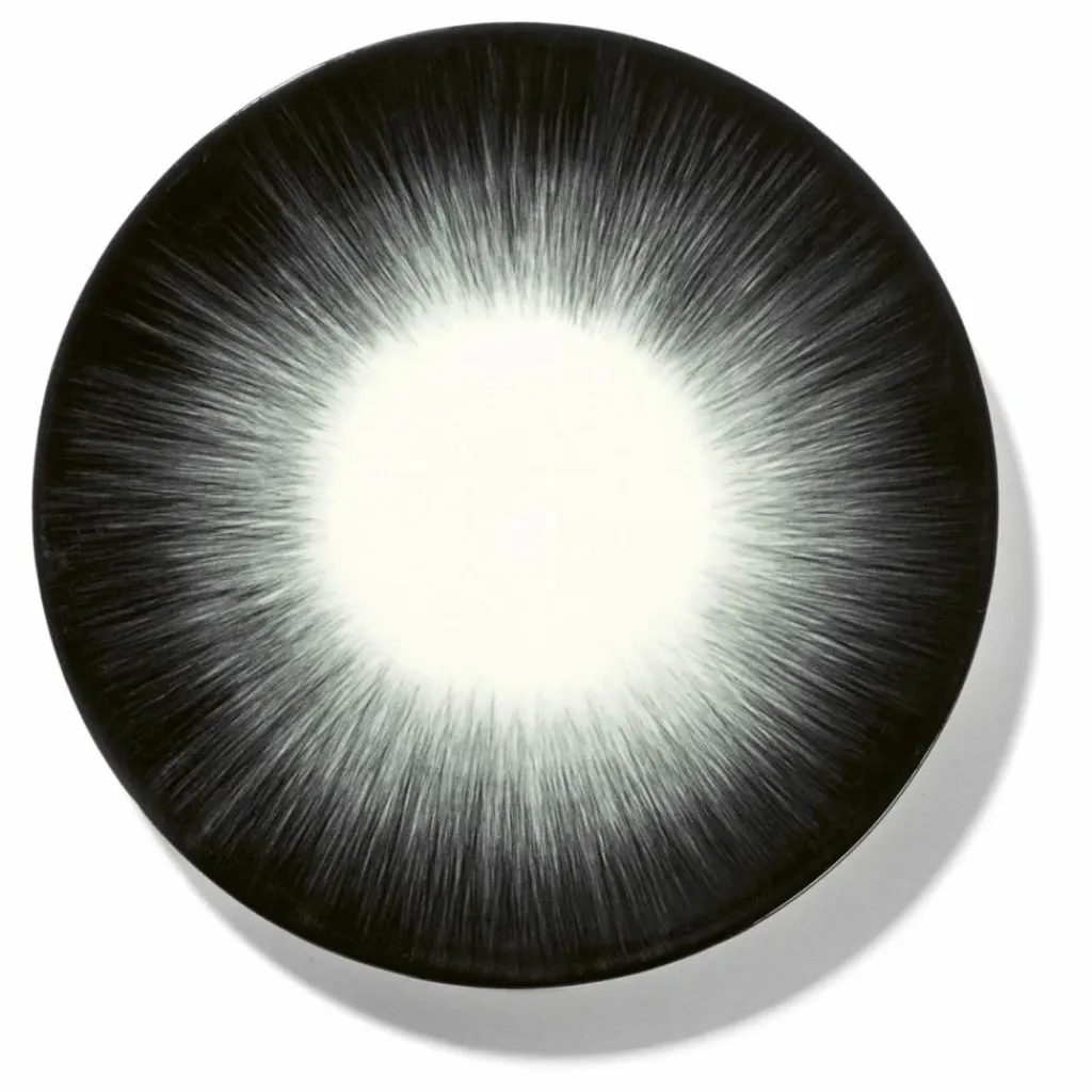 La collection Dé est née d’un jeu de clair-obscur, caractéristique du style d’Ann Demeulemeester. Le résultat offre une série de motifs ombrés peints à la main, créant ainsi un minutieux jeu de lignes.