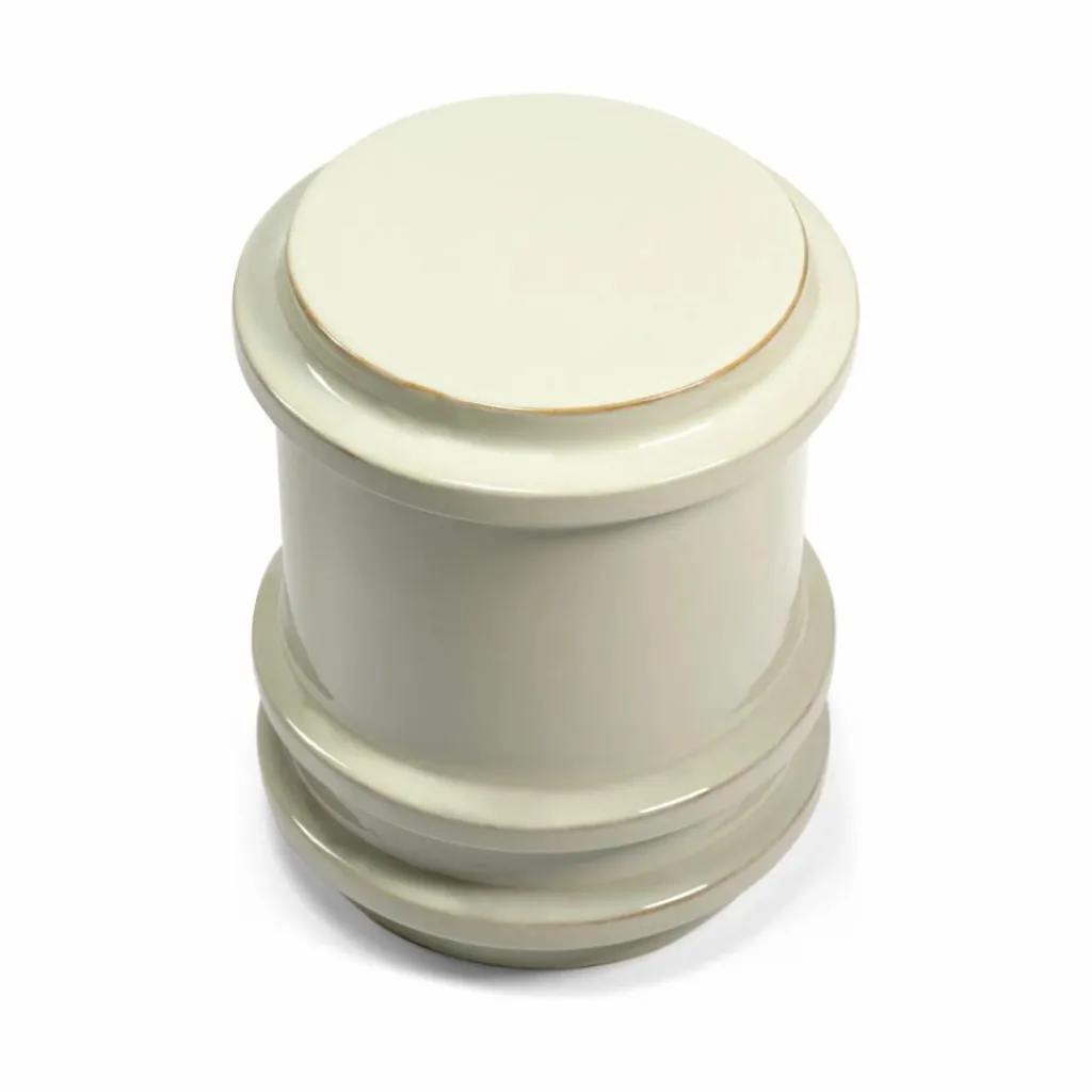 Au fil des ans, les tabourets Pawn sont devenus des objets polyvalents déclinés dans des formes géométriques colorées et des matériaux variés. Depuis peu, la préférence de Marie s’oriente vers le grès émaillé, avec des couleurs riches et profondes en guise de touche finale. L’ajout de rainures horizontales ou verticales rend ces Pawn esthétiquement intéressants tout en offrant une prise pour déplacer facilement les tabourets.