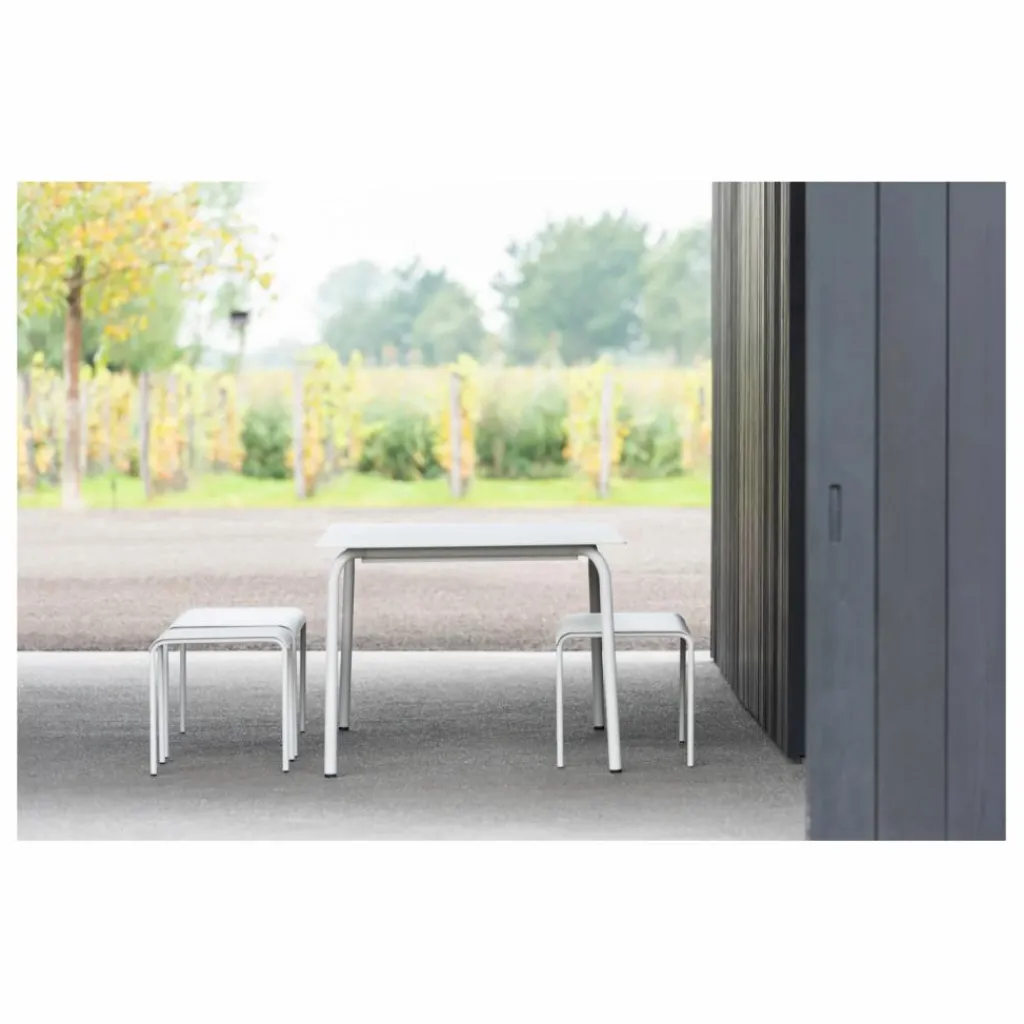 Le mobilier de la collection August de Vincent Van Duysen reprend les formes du monastère dont elles sont inspirées, dépouillées jusqu’à l’essentiel, mais avec des proportions contemporaines. L’aluminium laqué noir, vert eucalyptus ou sable résiste aux intempéries, ce qui permet d’utiliser les meubles à l’intérieur comme à l’extérieur. Sans détails superflus et dans des tons discrets, la collection August habillera votre terrasse avec élégance.