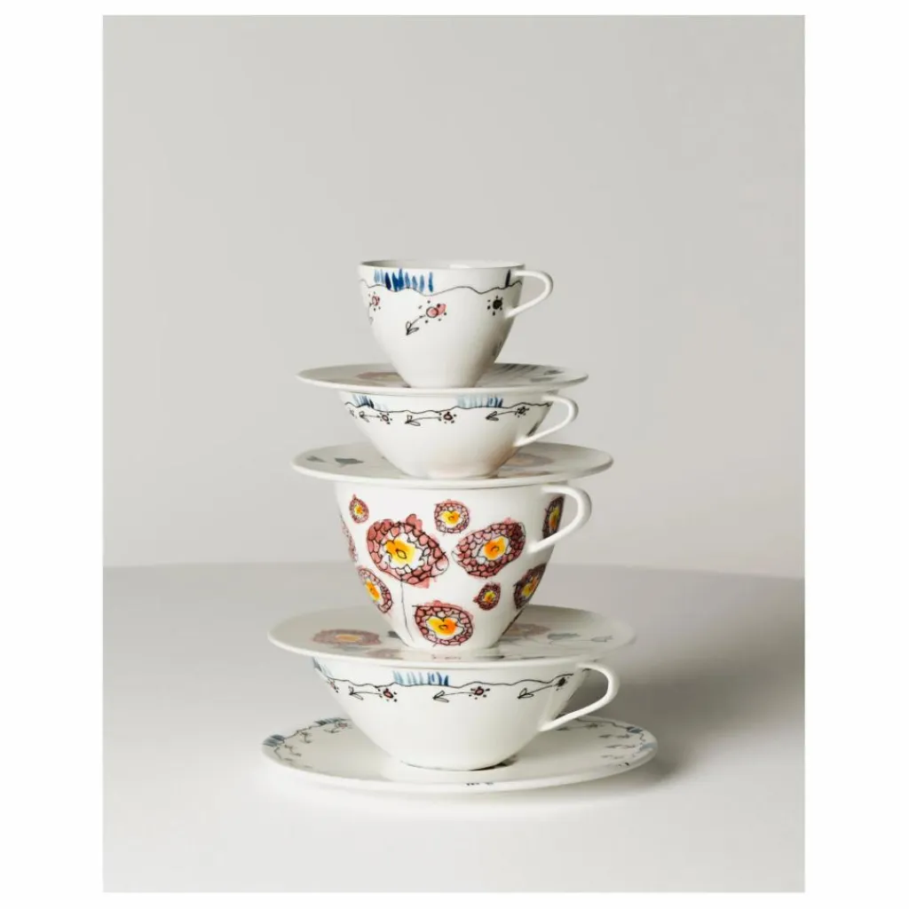 En collaboration avec Serax, la maison de mode italienne Marni a lancé un élégant service en porcelaine de 120 pièces, qui célèbre l’esprit artistique de la marque. Le motif floral inspiré de la nature est signé Francesco Rossi, le directeur artistique de Marni. Il est décalqué sur la porcelaine fine, avant d’y apposer une glaçure pour le rendre résistant à l’usure. Les formes légèrement asymétriques des assiettes, bols, tasses, plats et théières accentuent la finition manuelle et la qualité de la porcelaine.