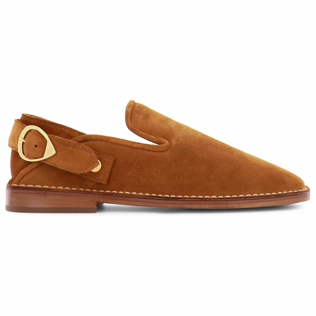 - Un slipper décontracté qui se mue en sabot grâce à son arrière rabattable et sa bride repositionnable. Sa tige, modernisée par son bout carré arrondi et ses découpes profilées, est piquée directement sur sa semelle selon la technique artisanale haut de gamme du « cousu sandalette ». Talon : 2 cm.