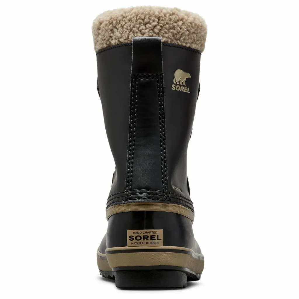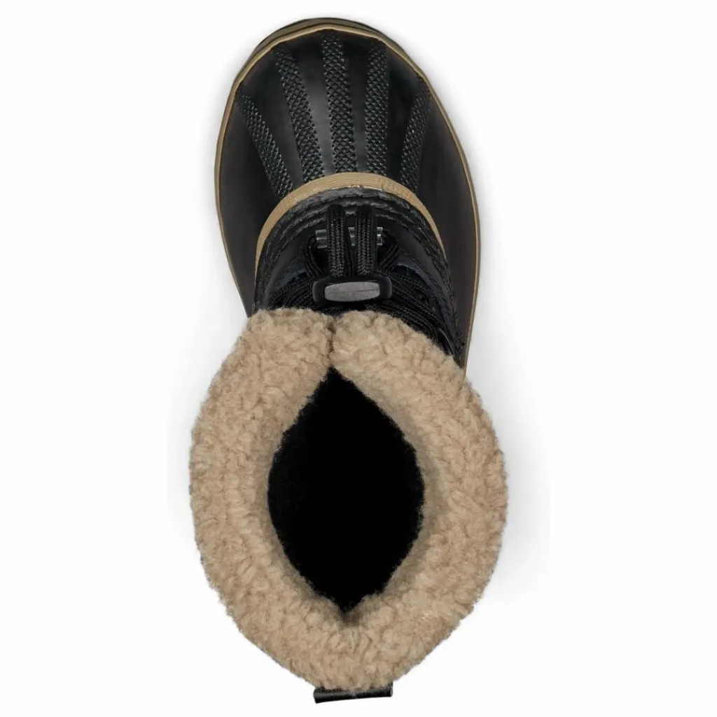- Chausson intérieur : Amovible, en feutre recyclé de 9 mm, lavable, avec revers en Sherpa pour une protection contre la neige. Insert anti-froid : Feutre contrecollé de 2,5 mm pour une isolation thermique renforcée. Coque extérieure : Caoutchouc vulcanisé imperméable, fabriqué à la main, avec semelle extérieure Sorel Aero-Trac™ conçue pour éviter l’accumulation de neige. Tige : Nylon imperméable. Construction : Coutures étanches pour une protection maximale contre l’humidité. Remarque : Les lacets ne sont pas imperméables. Style : Bordure en fausse fourrure, œillets en D, languette au talon pour un enfilage facile. Protection & Étanchéité/ Construction : Coutures scellées pour une imperméabilité totale.