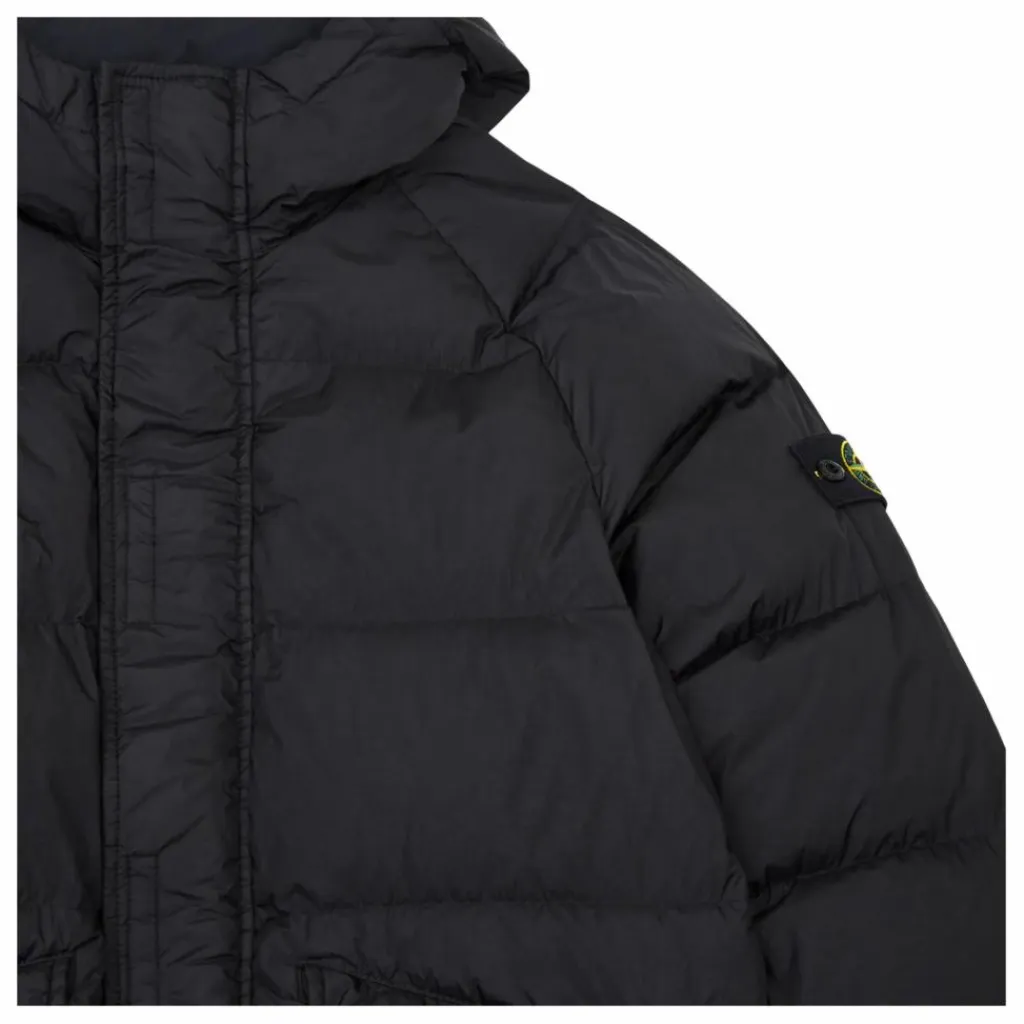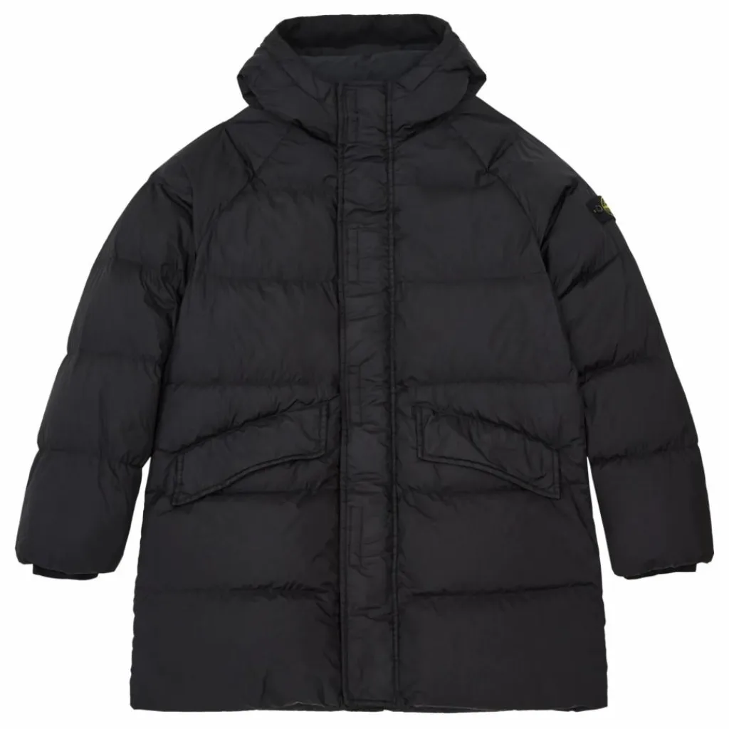 - Matelassé, Poches latérales à rabat, Logo sur la manche, Chaud, Manches longues, Capuche doublée, Col montant, Déperlant