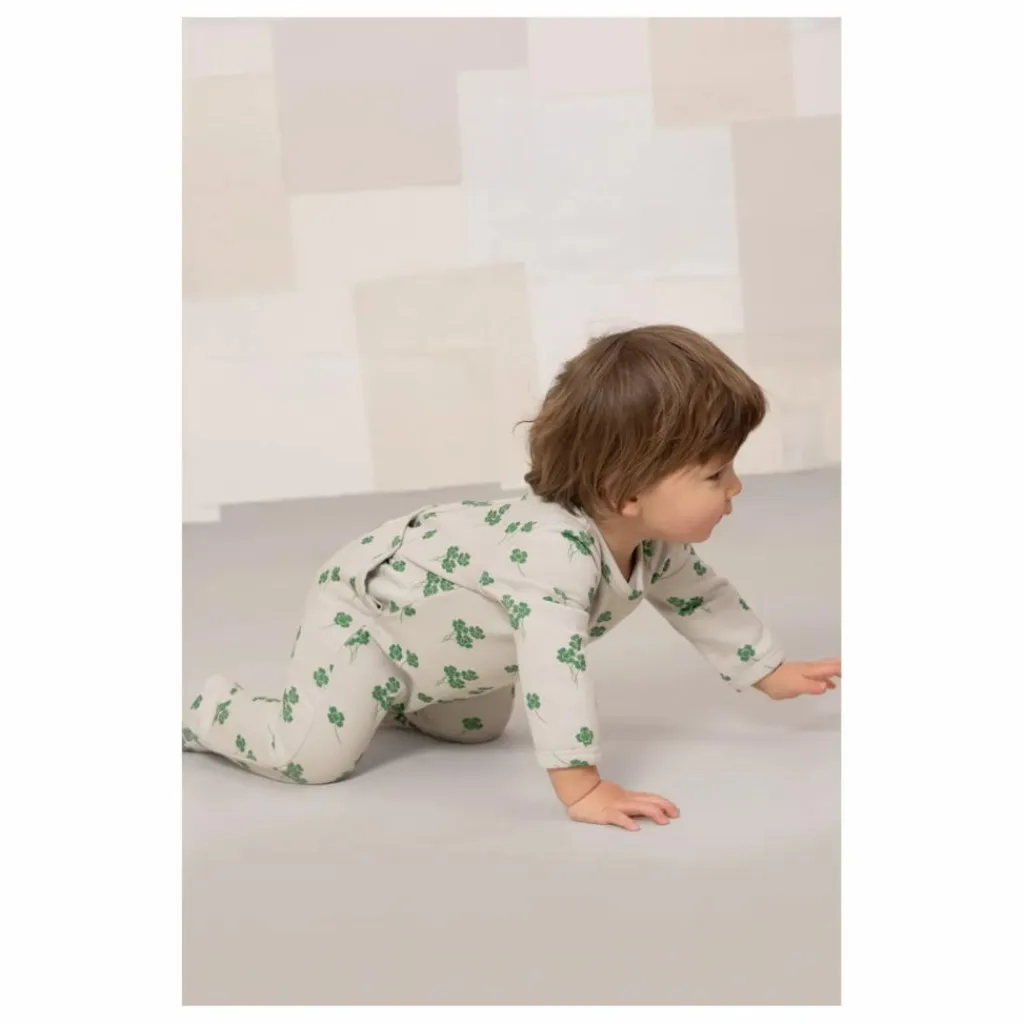 - Pyjama une pièce à pieds pour dormir au chaud. En molleton de coton biologique, sa douceur et son confort sont absolus.