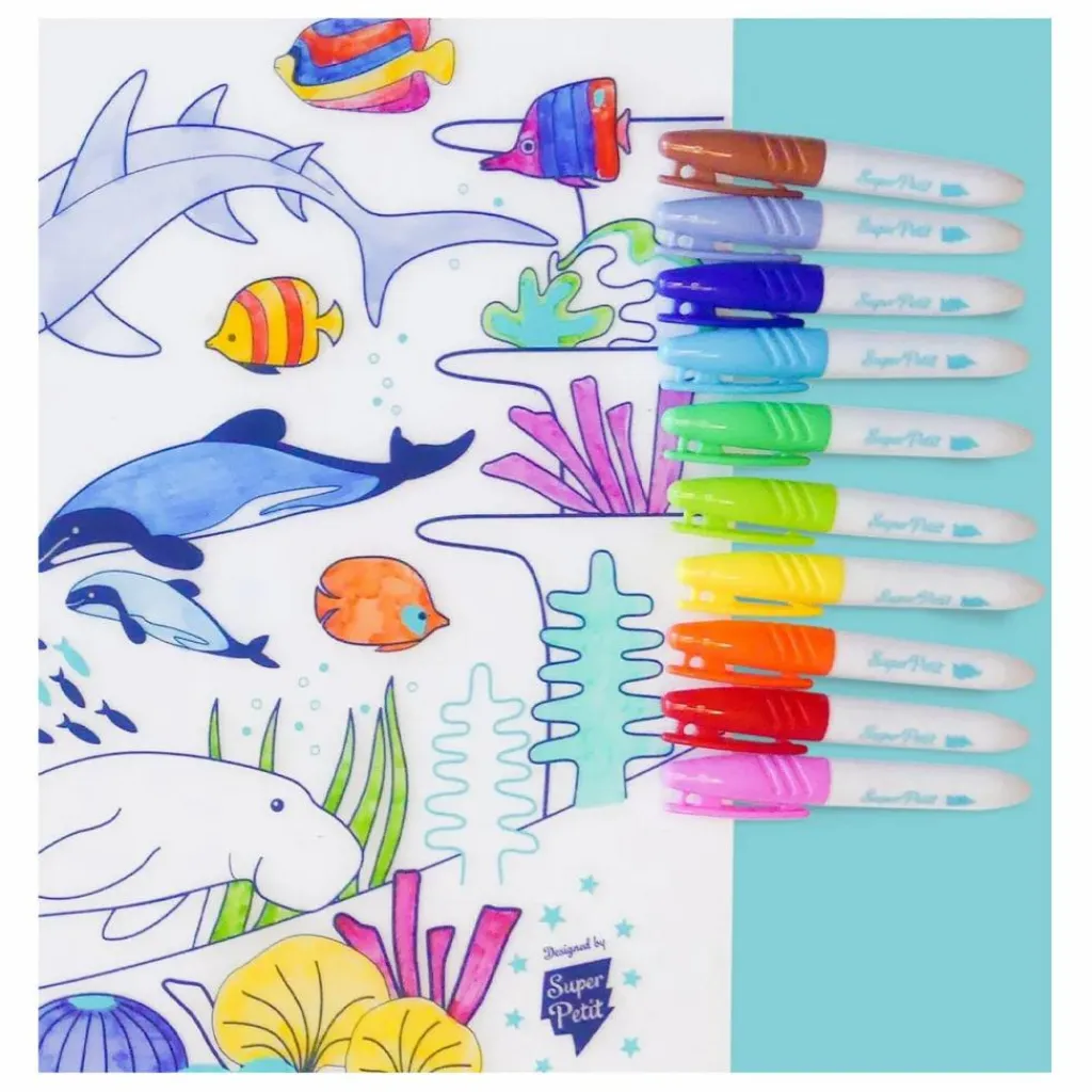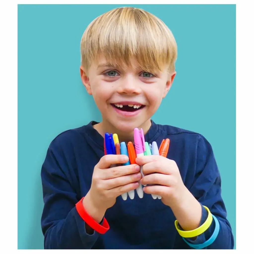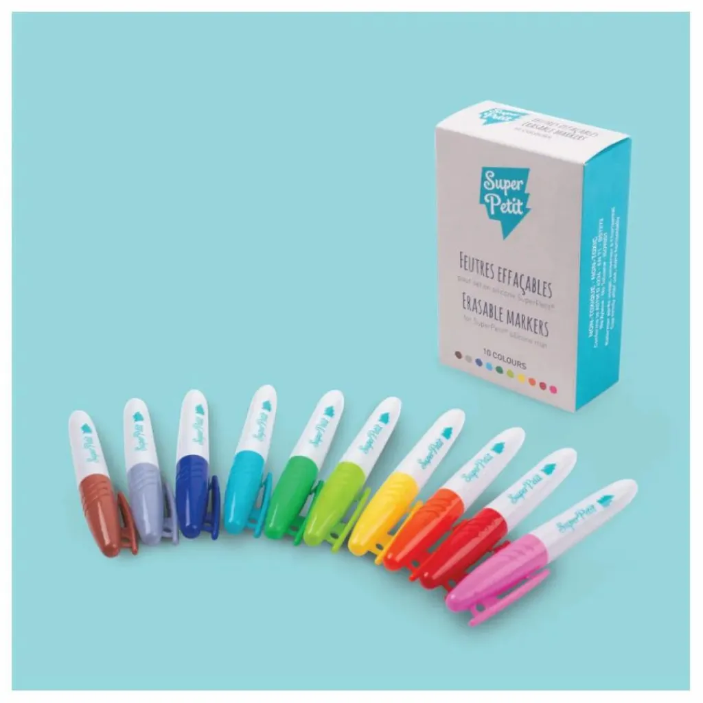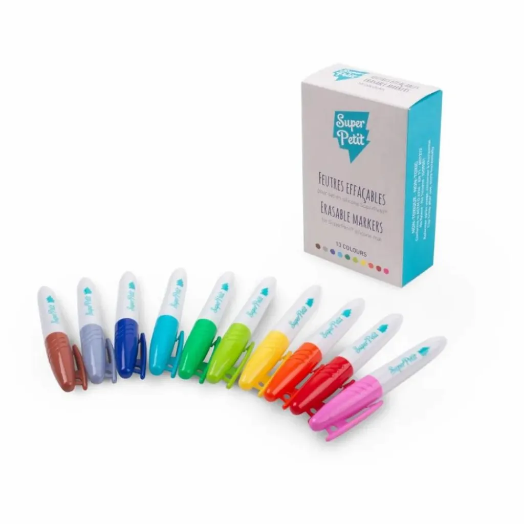 Laissez-parler leur créativité avec ce set de 10 feutres effaçables. Dotés d’encres non-toxiques, les feutres sèchent très vite et sont facilement lavables sur les sets en silicone de la même marque.