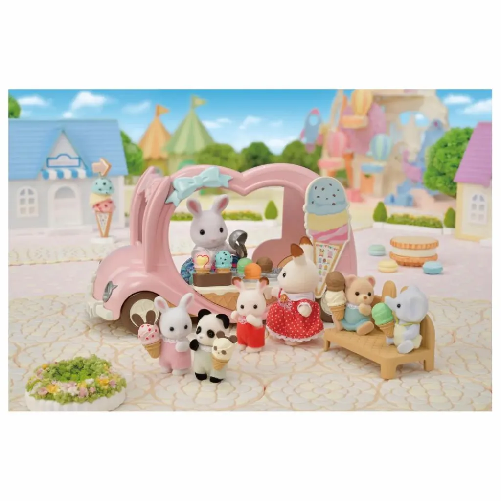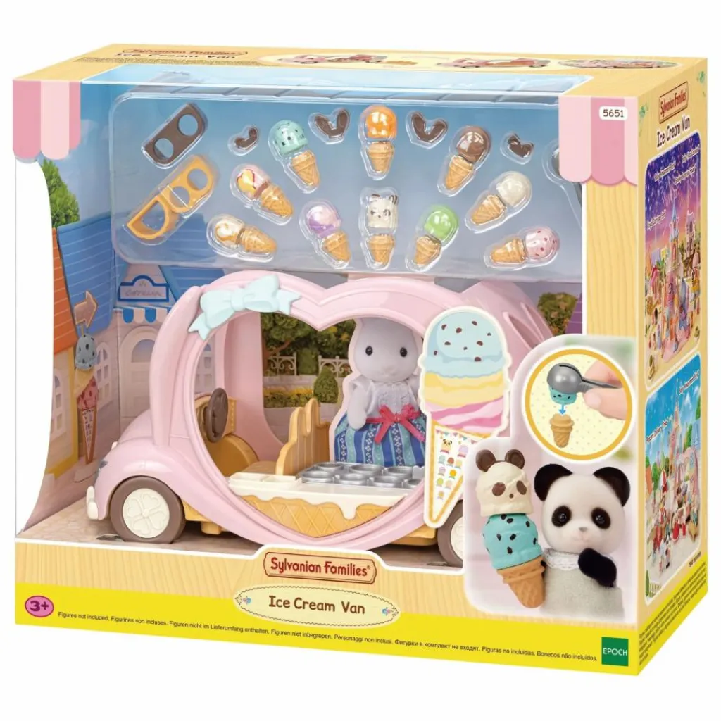 - Le camion du marchand de glace ambulant contient plus de 30 glaces et accessoires. Les cornets peuvent être tenus par les figurines. Le siège conducteur peut être retiré et utilisé comme banquette. La vitrine peut être retournée et utilisée comme siège.