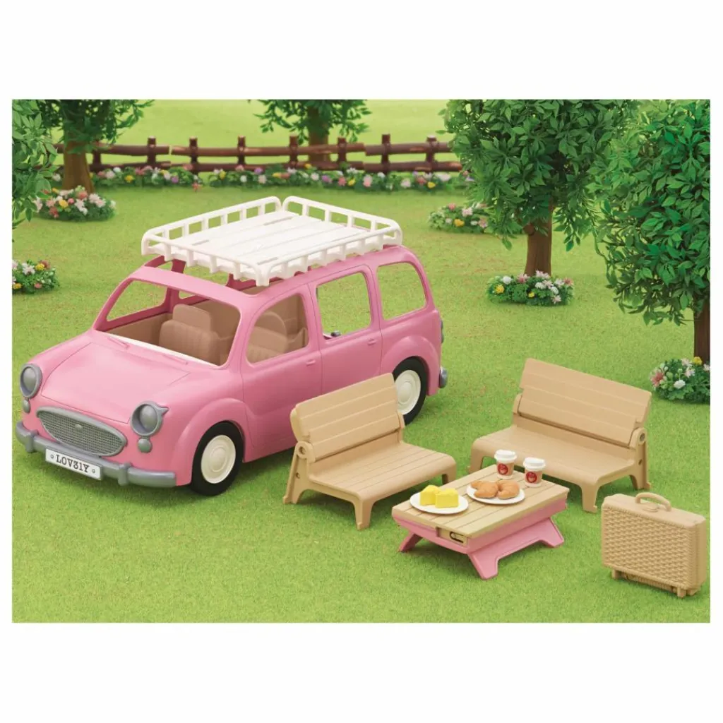 - 1 monospace avec galerie de toit, 1 coffre-table de pique-nique, 1 panier de pique-nique, 2 fromages, 2 croissant, 2 assiettes, 2 boissons, Figurine(s) non incluse(s)