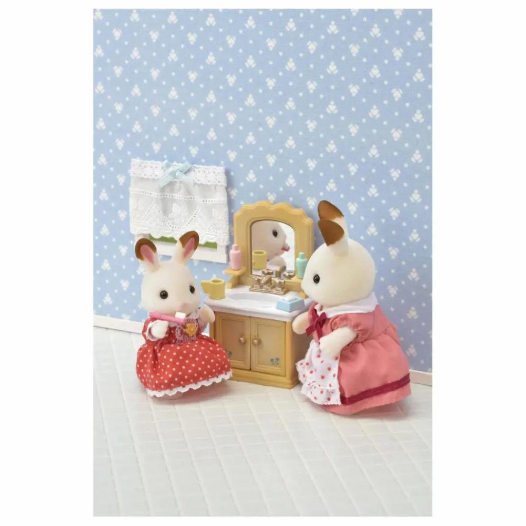 - 1 meuble lavabo, 1 douche, 1 baignoire, 1 support pour baignoire, 1 toilette, 1 support pour papier toilette, de nombreux accessoires, figurine(s) non incluse(s)