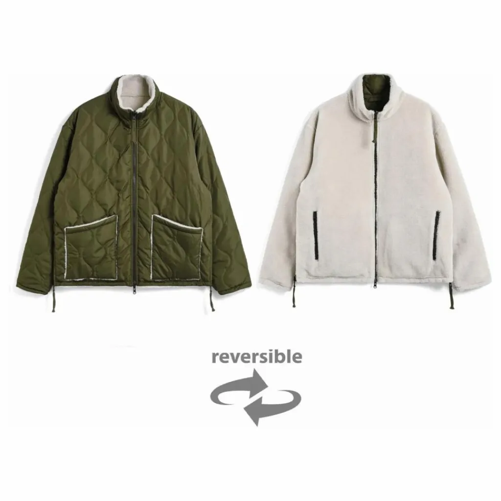 - Cette doudoune militaire réversible à col boa offre deux looks différents.