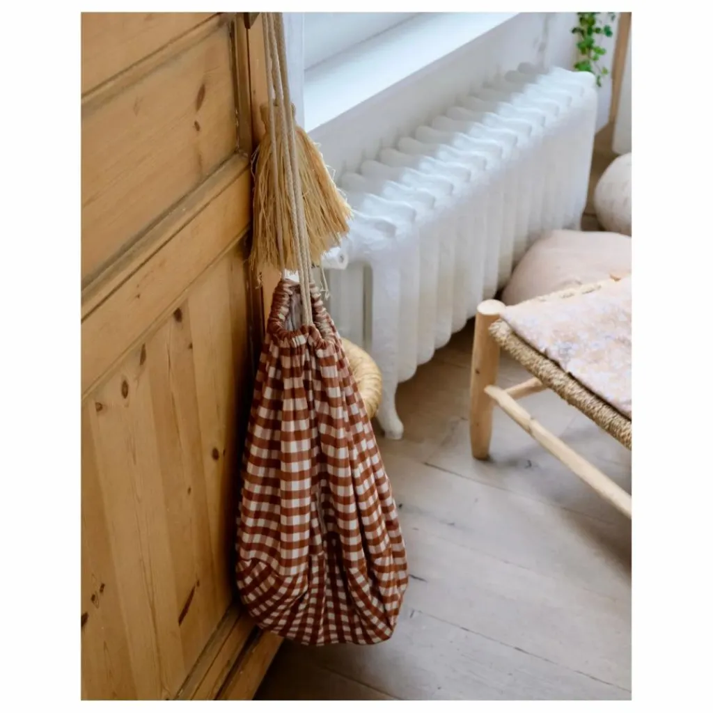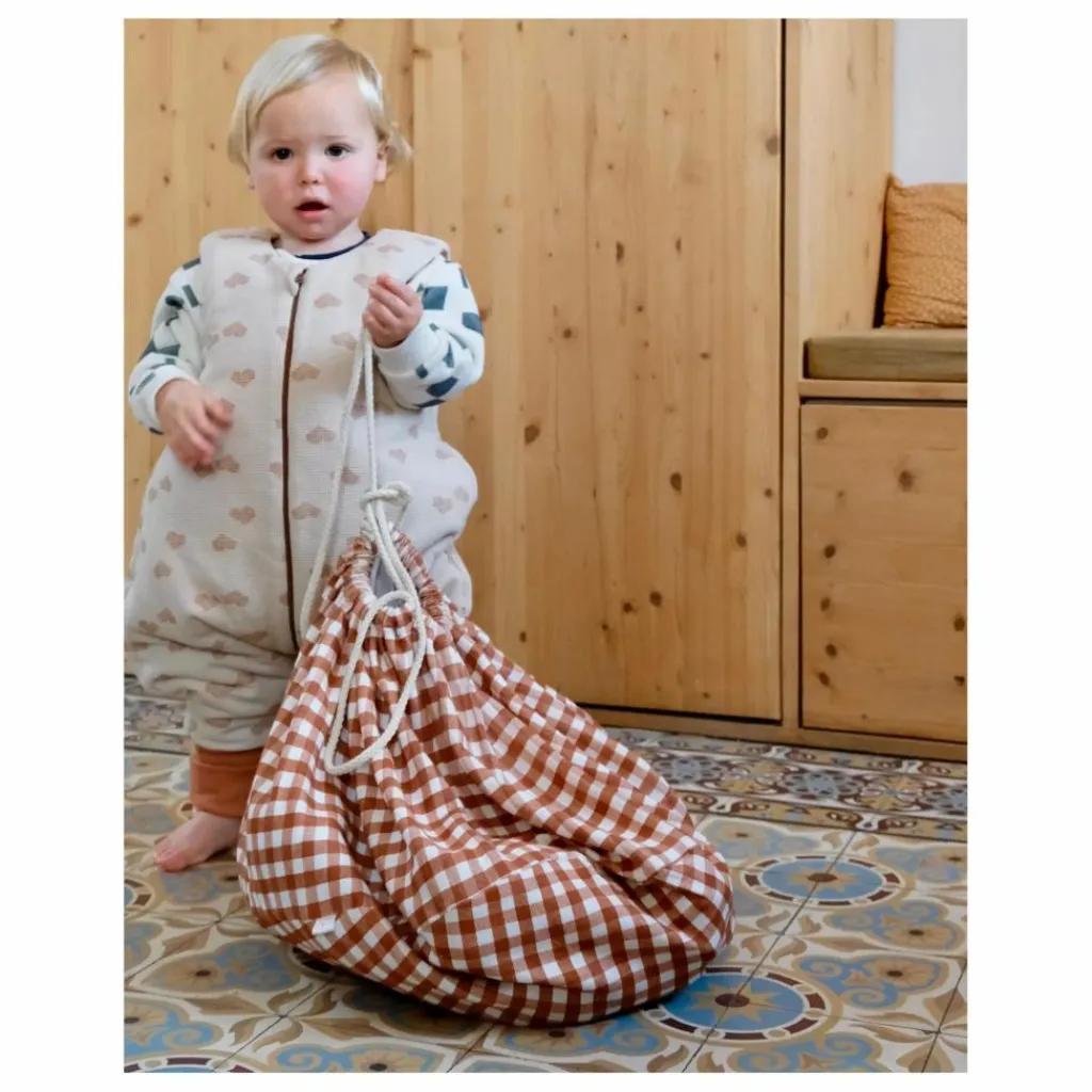 Grâce à sa corde, la housse s’adapte à tous les coussins (d’allaitement) et le transforme en nid douillet pour que votre bébé s’y love. Quand vous ne voulez plus l’utiliser en pouf, vous pouvez l’utiliser également en sac de rangement dans la chambre, ou à emporter n’importe où !