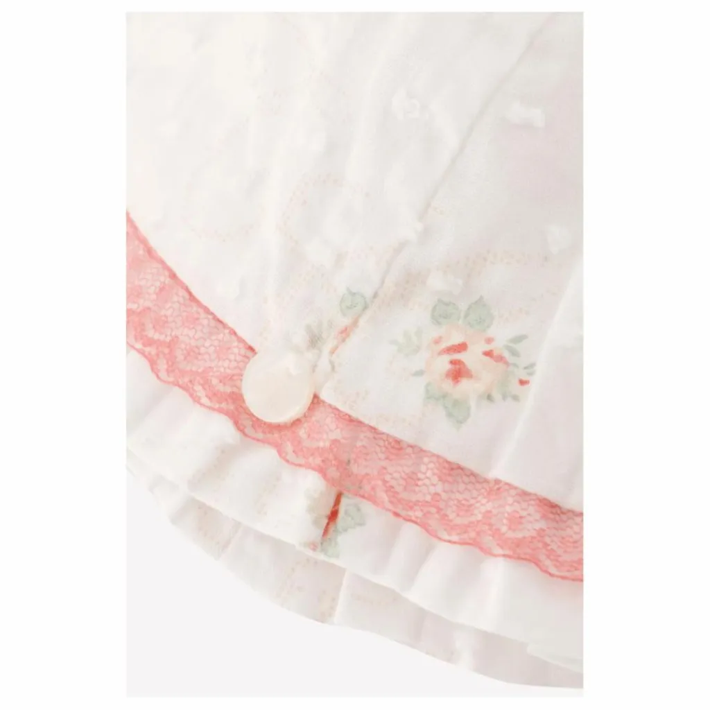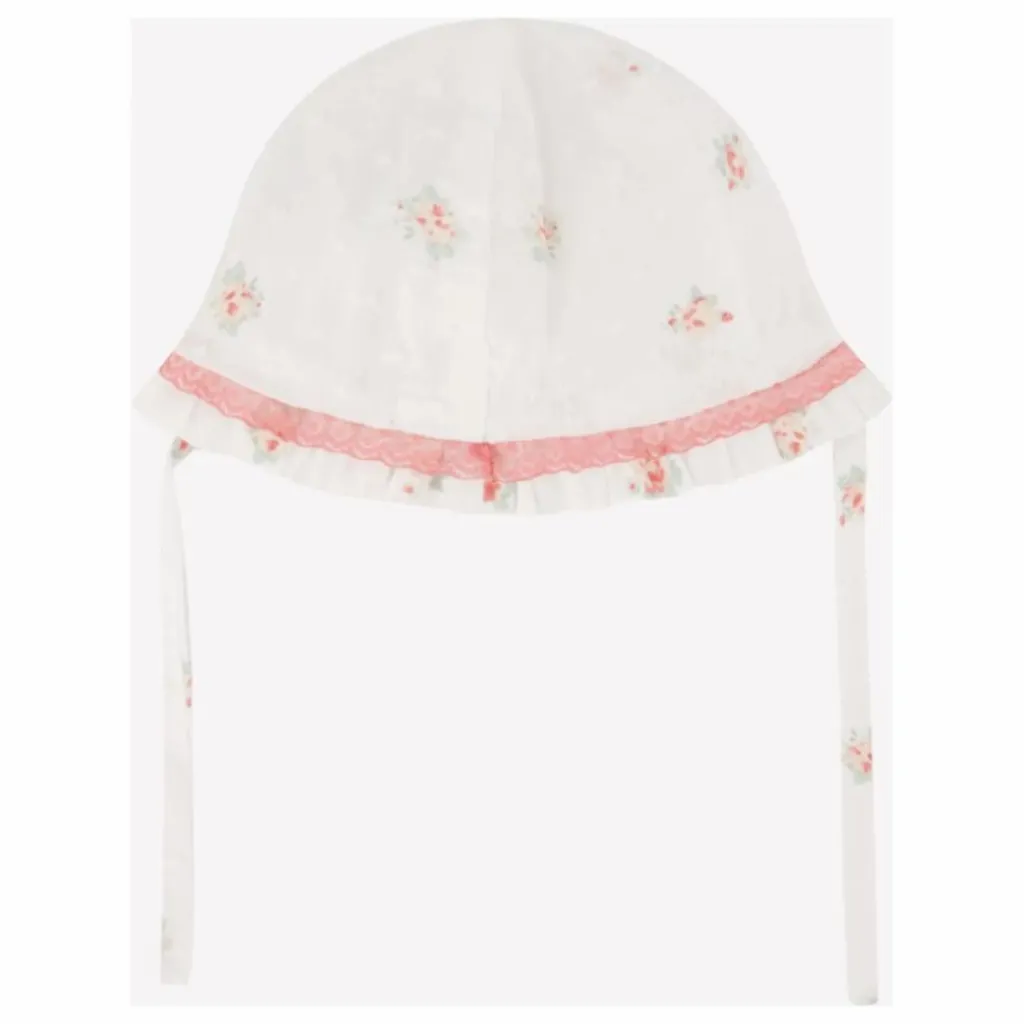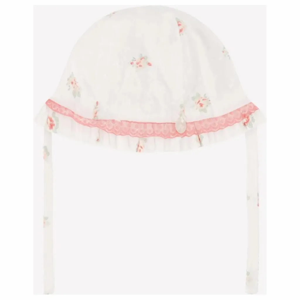- Ce délicat bob blanc en tissu plumetis, orné d’un imprimé fleuri et d’une fine dentelle rose, ajoute une touche romantique au vestiaire de bébé. Conçu pour s’harmoniser avec les ensembles et autres pièces de la collection, il complète les tenues estivales de bébé avec élégance. Parfait pour les journées ensoleillées, cet accessoire protège tout en apportant douceur et style à bébé. Fabriqué en Europe. CA90010-01