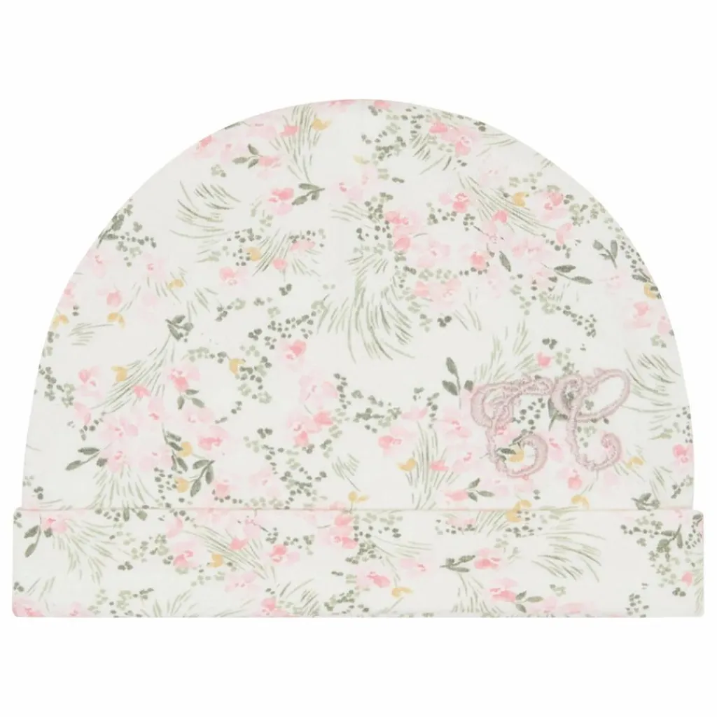 - Bonnet en jersey imprimé fleuri inspiré d’un Jardin Hivernal, assorti au pyjama du thème Jardin Hivernal.