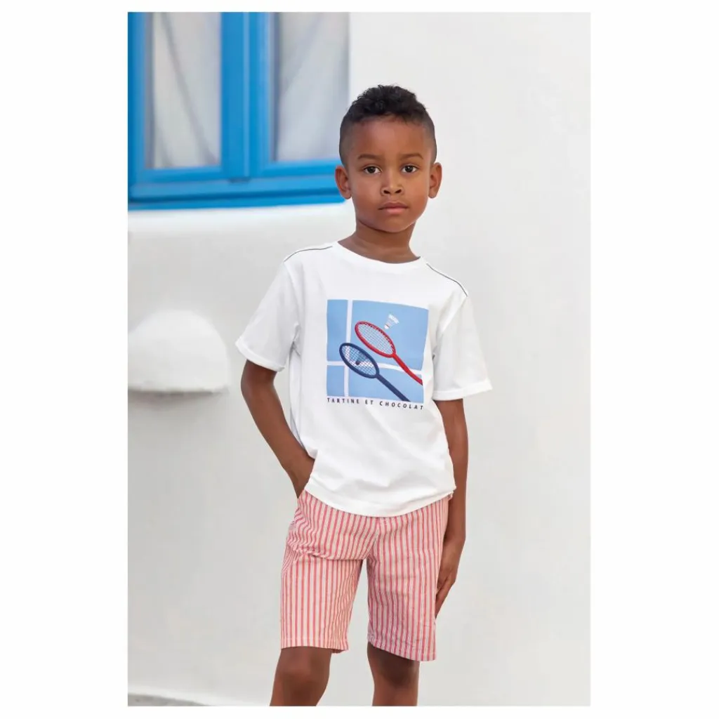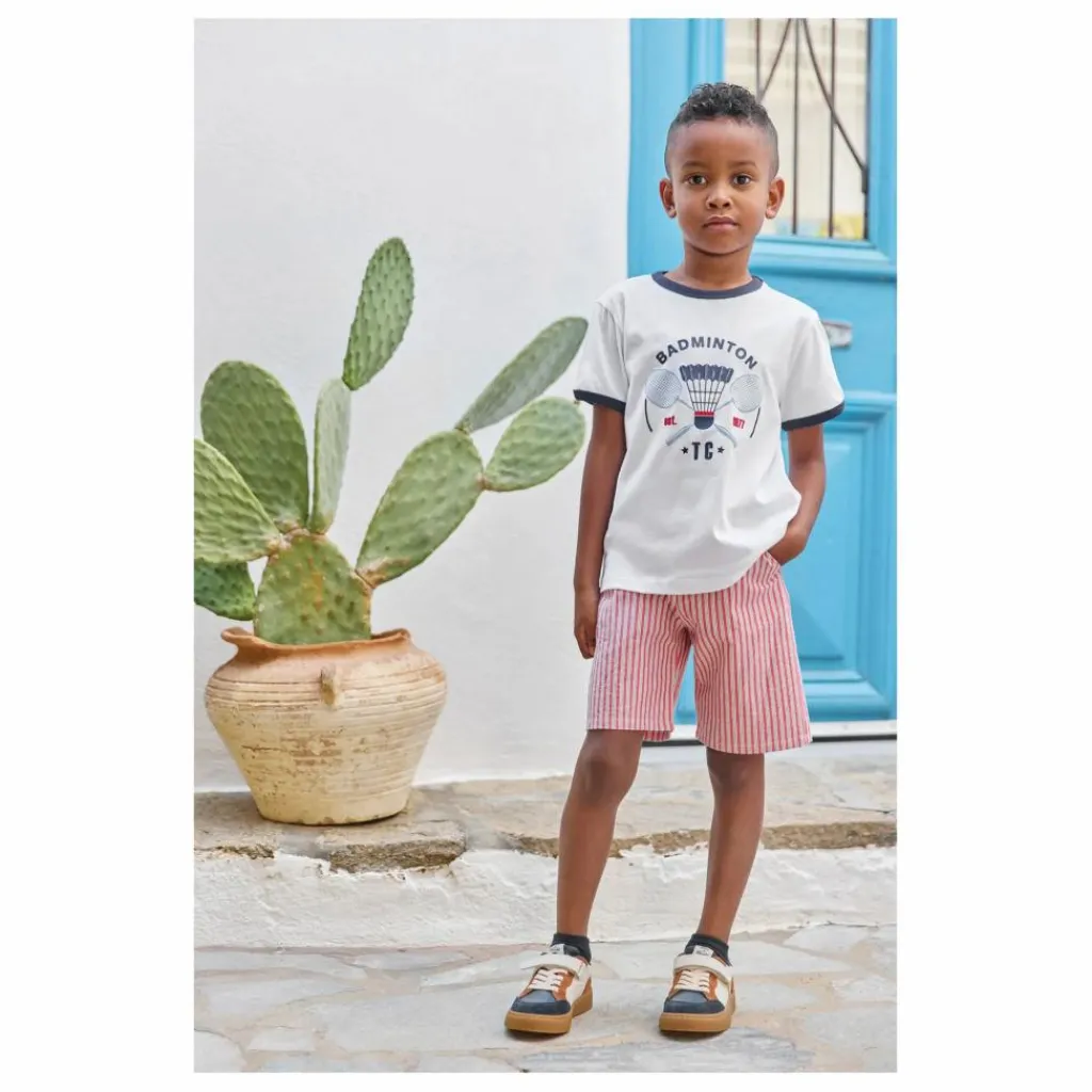 - Préparez votre petit champion pour l’été avec ce short à rayures de la collection « Sport club » ! Confectionné en coton, ce modèle assure confort et style. Le détail signature TC apporte une touche d’élégance sportive irrésistible. Idéal pour les journées actives, associez-le à un t-shirt coloré pour un look dynamique et tendance !
