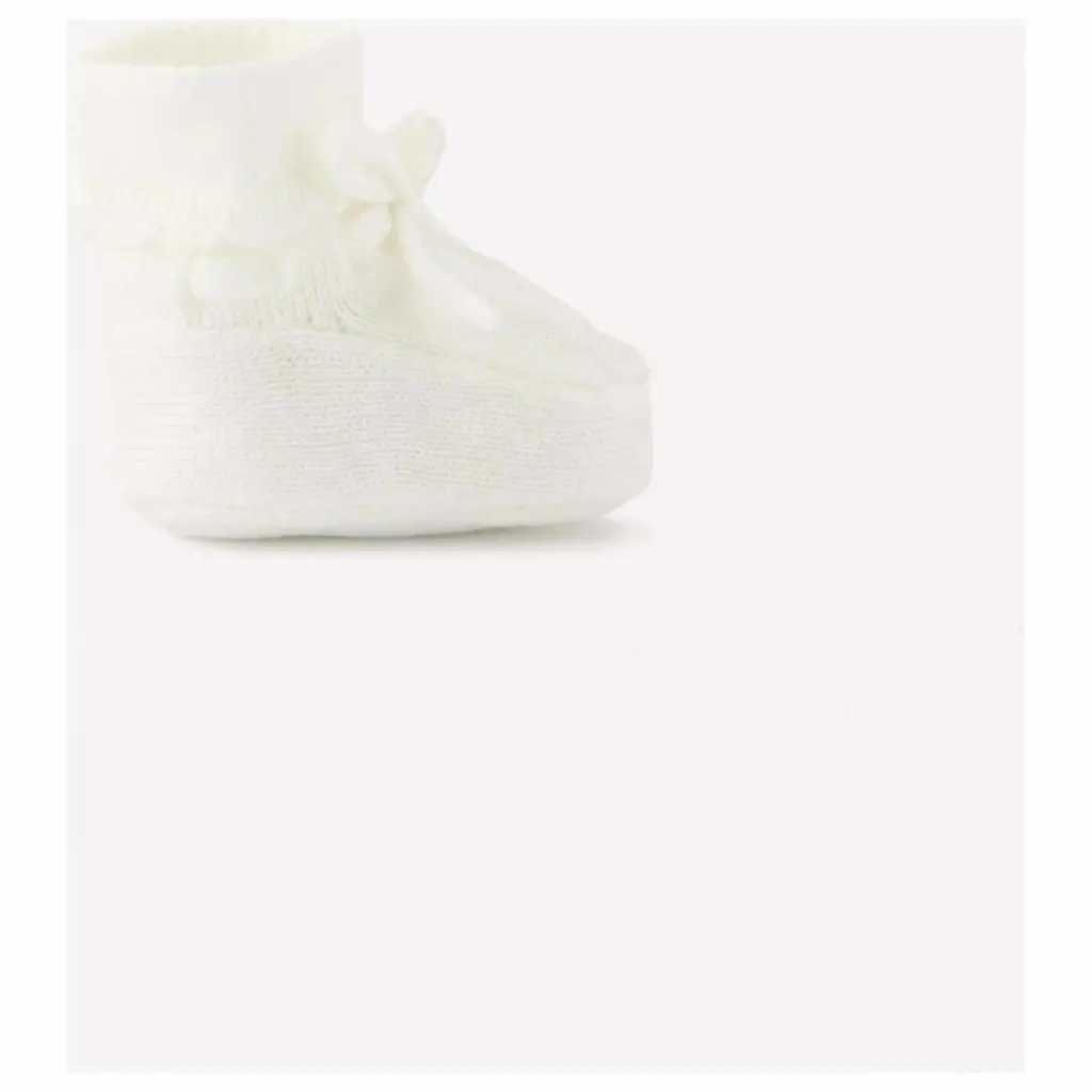 - Ces chaussons écru chiné en coton sont idéals pour le premier trousseau mixte de bébé. Avec leur charmant nœud sur le devant, ils ajoutent une touche de charme à chaque tenue. Doux et confortables, ils enveloppent les petits pieds de chaleur et de tendresse. Associez-les à une grenouillère en coton pour un ensemble douillet et élégant !