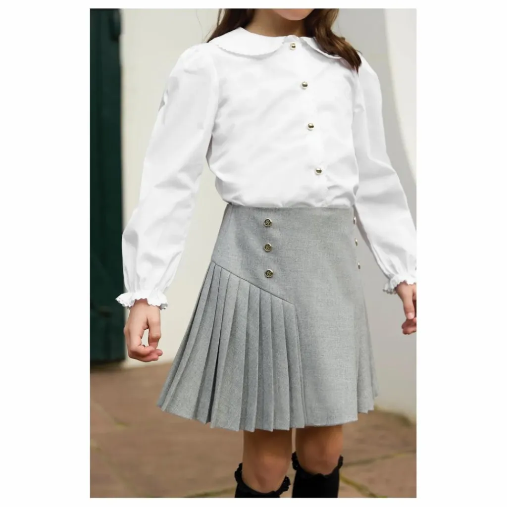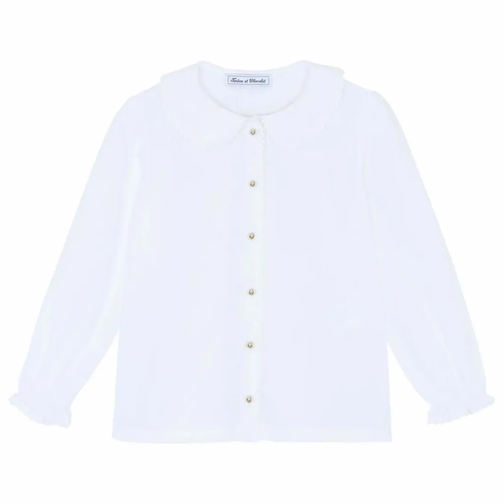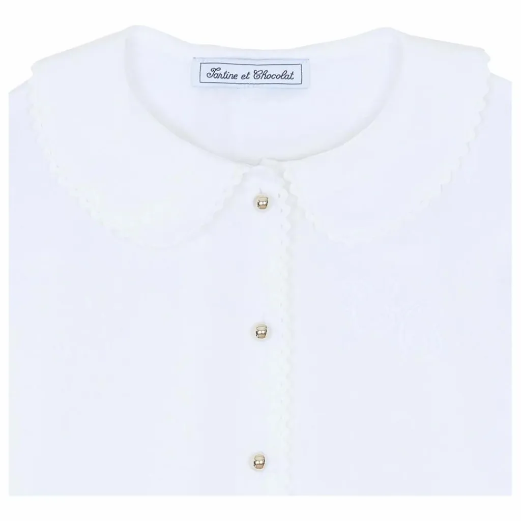 - Cette tunique pour junior fille, en coloris blanc, séduit par son col claudine festonné, apportant une touche de délicatesse et d’élégance. Ses manches resserrées et volantées ajoutent une note de légèreté et de raffinement. Confectionnée avec soin, elle est sublimée par la signature TC, symbole de l’univers raffiné de la Maison. Une pièce intemporelle, parfaite pour un look chic et gracieux.