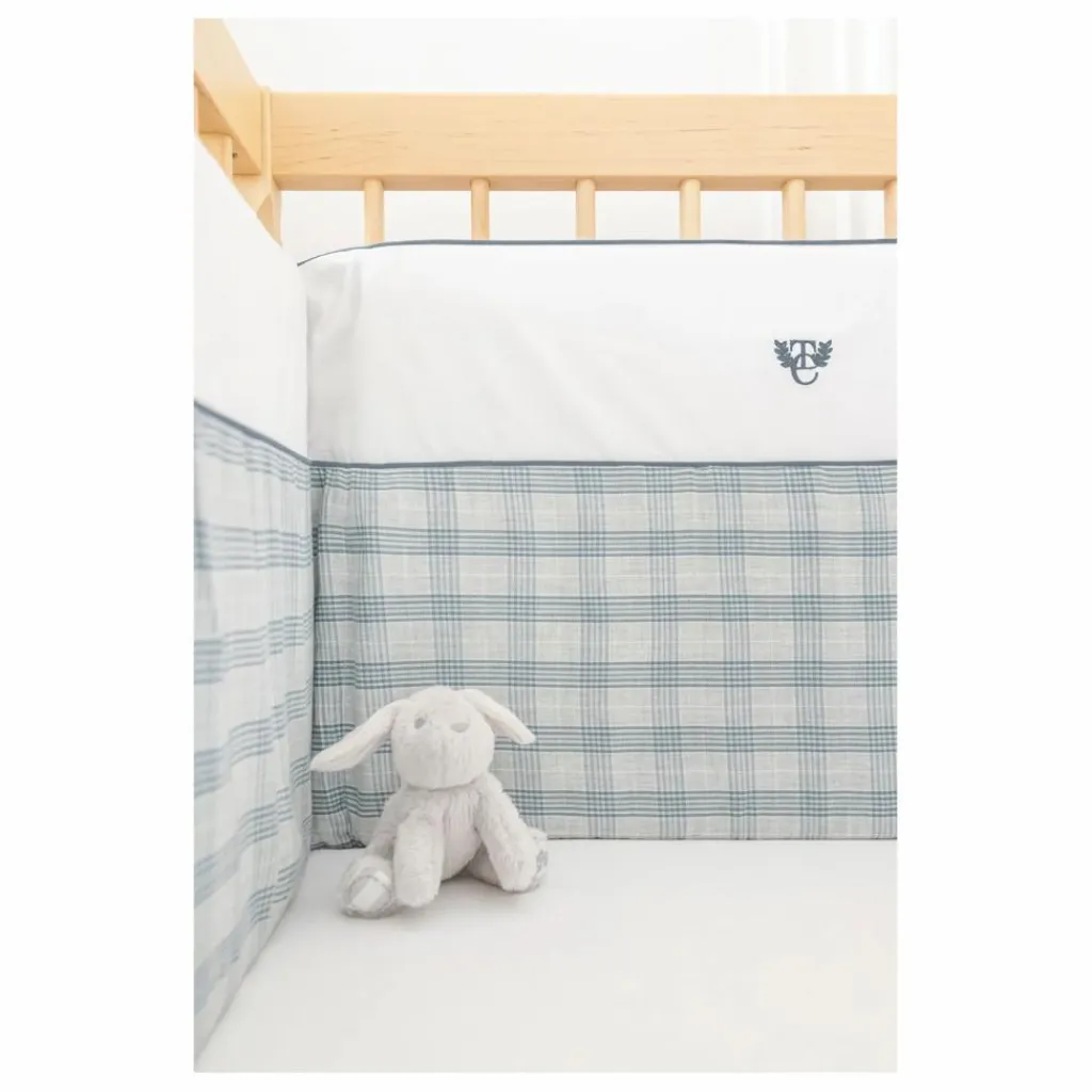 Ce joli tour de lit plongera bébé dans de beaux rêves lors de ses nuits. On craque pour cet adorable tour de lit bleuet en twill de coton. Cette pièce s’ajoute à la ligne chic et moderne revisitant le carreau traditionnel sur un twill de coton. Idéal pour un petit garçon, l’imprimé Twill de coton perpétue les souvenirs si chers à l’enfance. La matière très douce et réconfortante rappelle la flanelle tout en gardant la légèreté du coton.