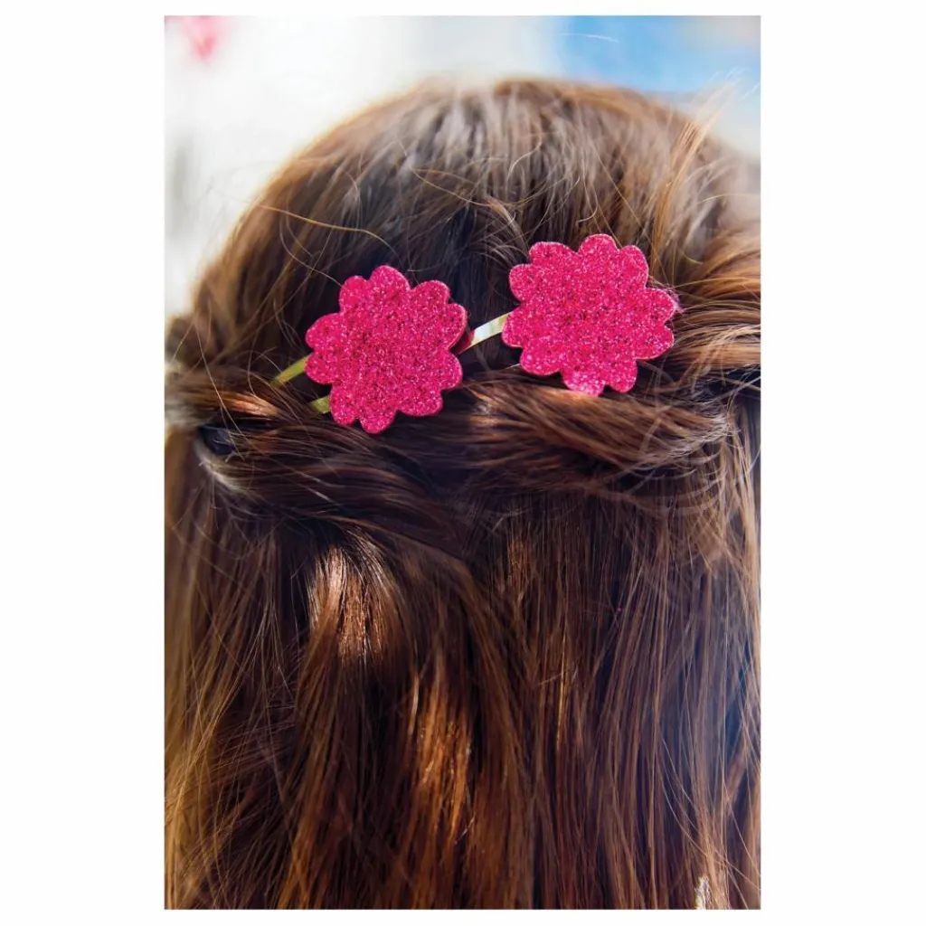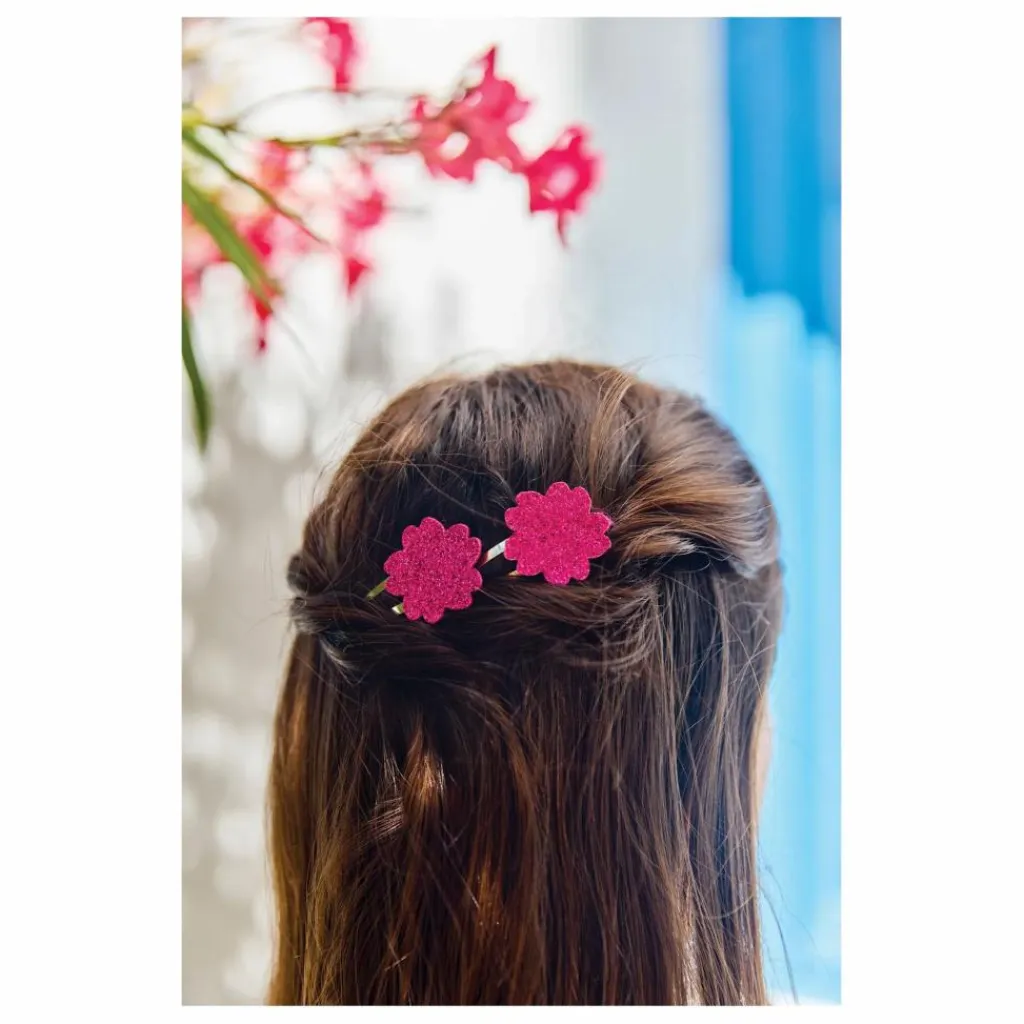 - Ajoutez une touche de soleil à chaque coiffure avec ces deux barrettes hibiscus en fleurs à paillettes. Idéales pour illuminer les tenues estivales, elles apportent une note joyeuse et pétillante à chaque journée ensoleillée ! Leur matériau en métal assure une tenue idéale, même pour les jeux les plus fous. Associées à une robe légère ou un t-shirt coloré, elles complètent un look d’été plein de charme.