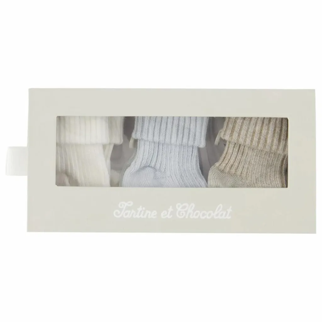 - Ce ravissant kit de trois paires de chaussettes en teinte bleu ciel est un essentiel du vestiaire de bébé. Confectionnées en coton, ces chaussettes enveloppent les petits pieds de douceur, parfaites pour maintenir bébé bien au chaud tout au long de la journée. Adaptées pour toutes les saisons, elles sont idéales pour compléter une tenue élégante, que ce soit avec un joli body ou une combinaison confortable. Un accessoire pratique et raffiné pour le quotidien.