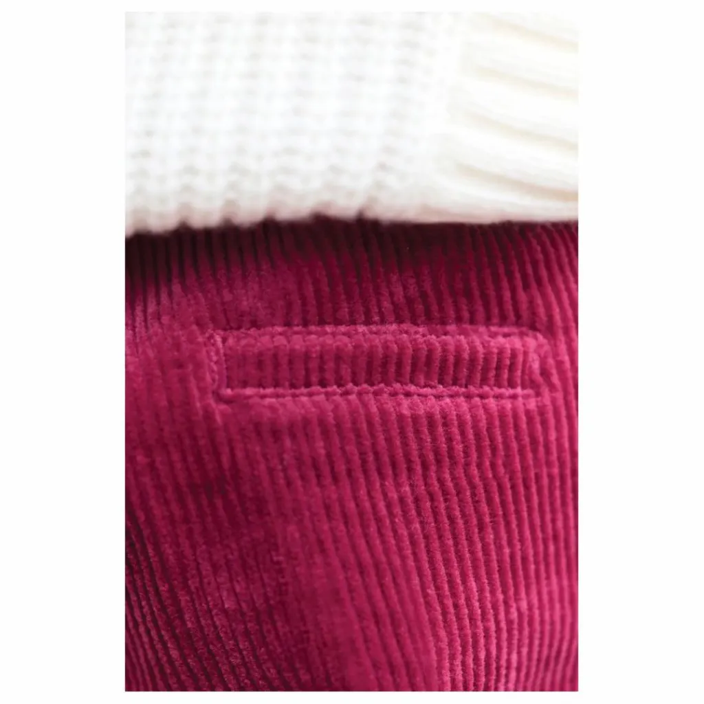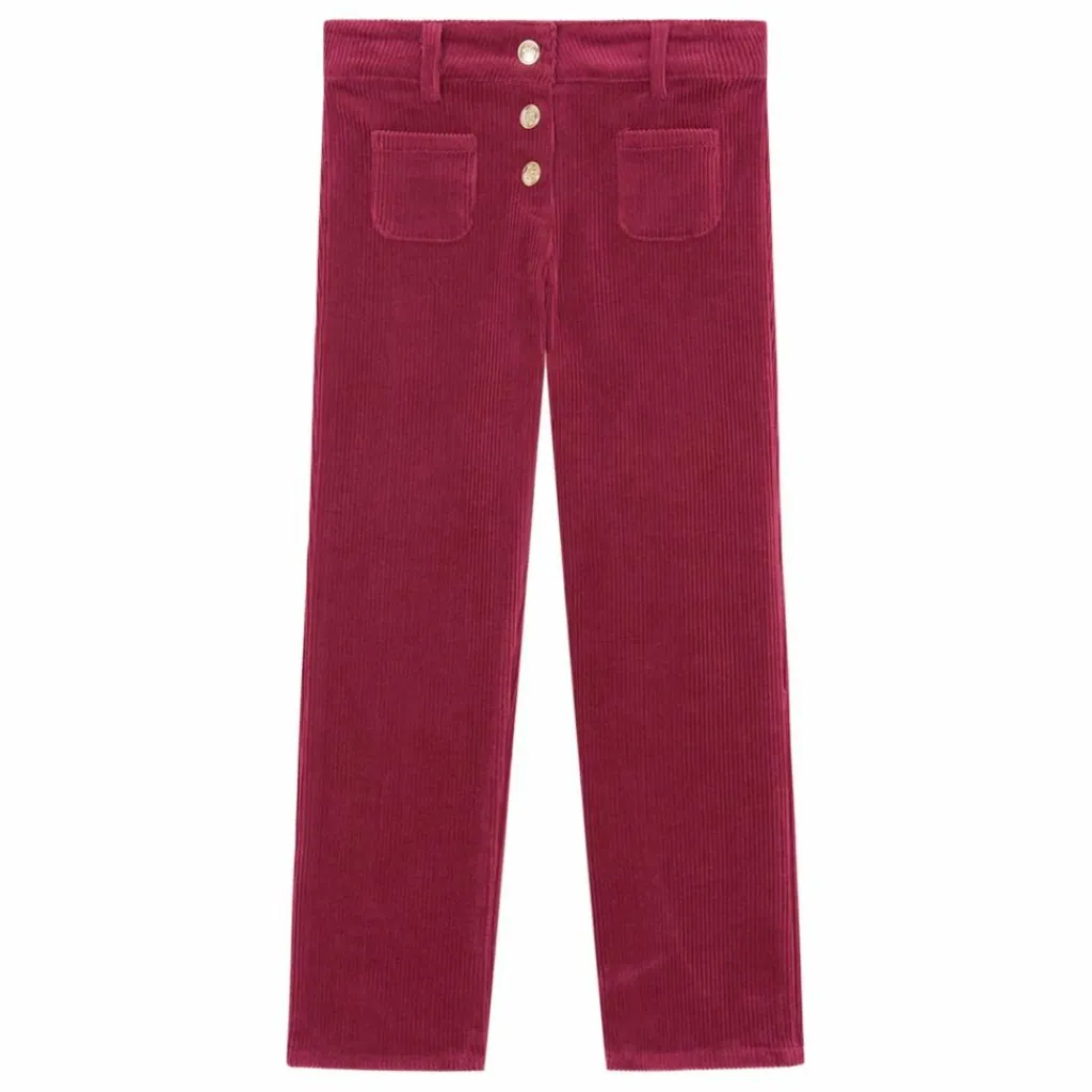 - Ce pantalon pour junior fille, en coloris magenta, est confectionné en velours doux et confortable. Avec ses deux poches sur le devant, il allie praticité et élégance. Parfait pour un look audacieux et stylé, il est idéal pour toutes les occasions.