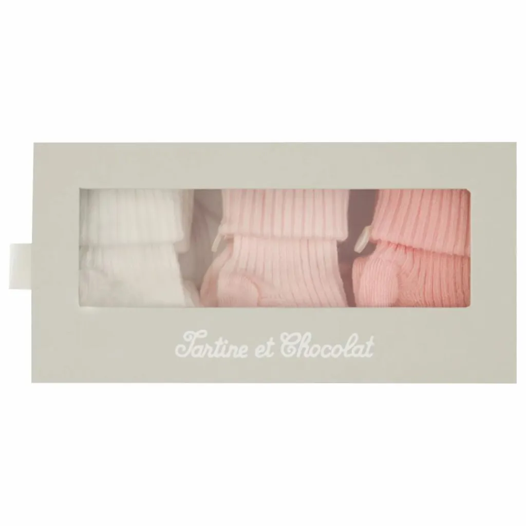 - Voici le kit idéal pour compléter le trousseau de bébé ! Composé de trois paires de chaussettes en coton, ce kit offre une paire blanche, une paire rose pâle et une paire rose foncée, toutes ornées de la signature TC. Idéales pour garder les petits pieds de bébé au chaud et stylés ! Associez-les avec des ensembles doux et moelleux pour un look confortable dès la naissance.
