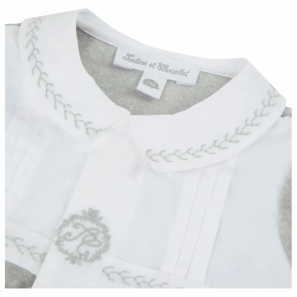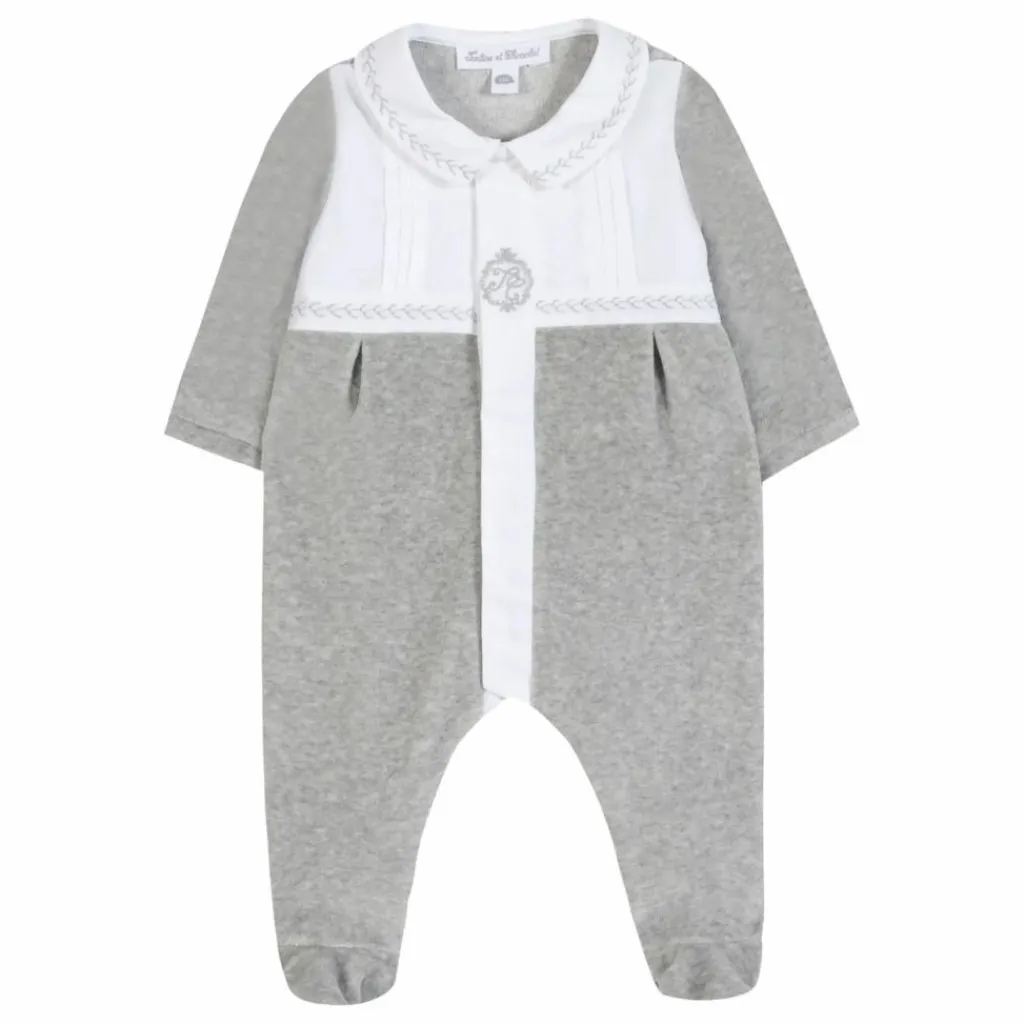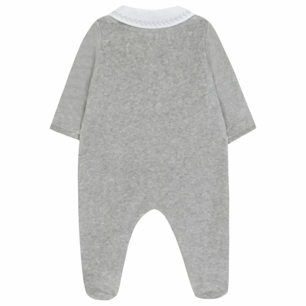 - Ce pyjama gris chiné en velours pour naissance garçon allie douceur et élégance. Les plis religieux apportent une délicate texture, tandis que le col blanc, orné de broderies gris chiné, offre une finition raffinée. Un essentiel confortable, parfait pour accompagner les premiers instants.