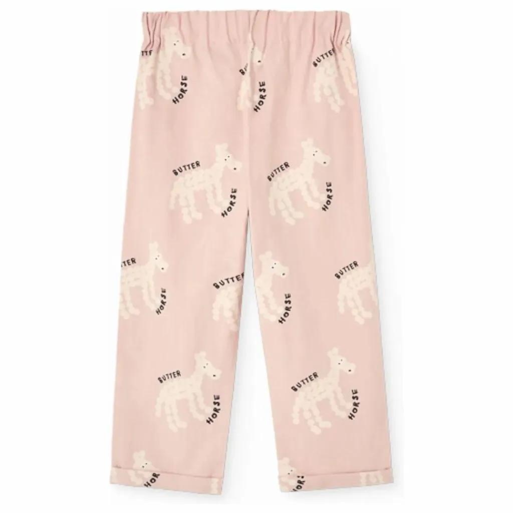 - Ce pantalon rose à chevrons avec des chevaux en beurre et une taille élastique est une pièce de Crazy Farm par The Animals Observatory qui transforme la tendresse en confort créatif dans les vêtements pour enfants.