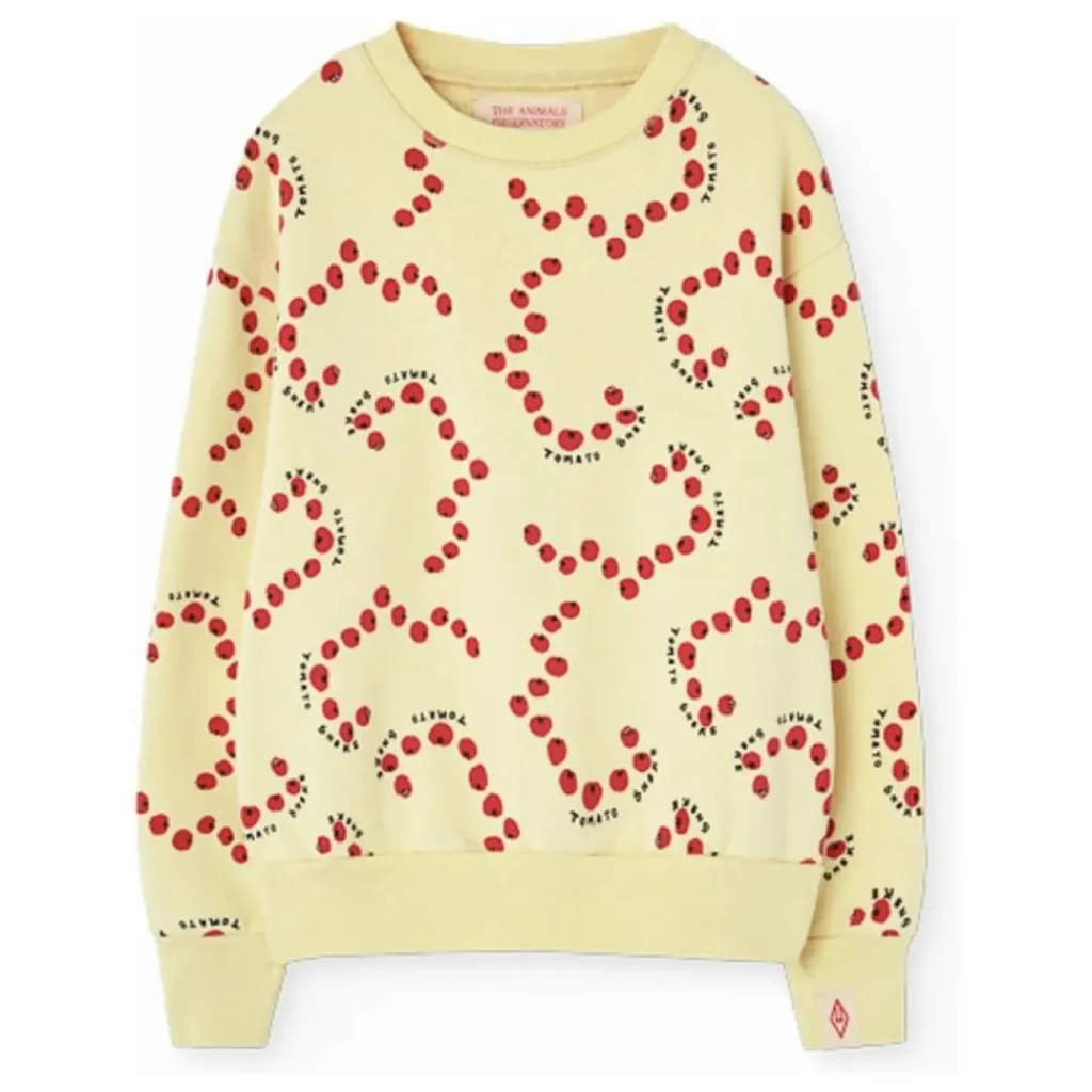 - De minuscules tomates s’alignent pour créer de drôles de serpents sur ce sweat-shirt en polaire imprimé et non brossé. Un sweat-shirt de printemps pour les enfants de Crazy Farm by The Animals Observatory, conçu pour remplir chaque journée de couleurs et de créativité.