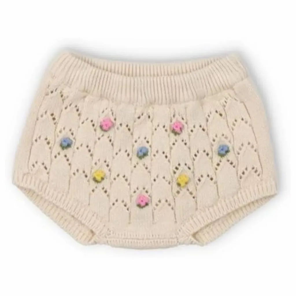 - Bloomer en tricot avec structure et détails floraux. Il est doté d’une ceinture et de poignets côtelés. Parfait à combiner avec le cardigan et le bonnet assortis.