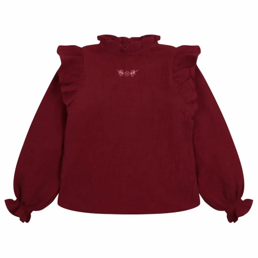 - L’un de nos modèles classiques de chemisier en double gaze, avec des broderies contrastées sur le devant.