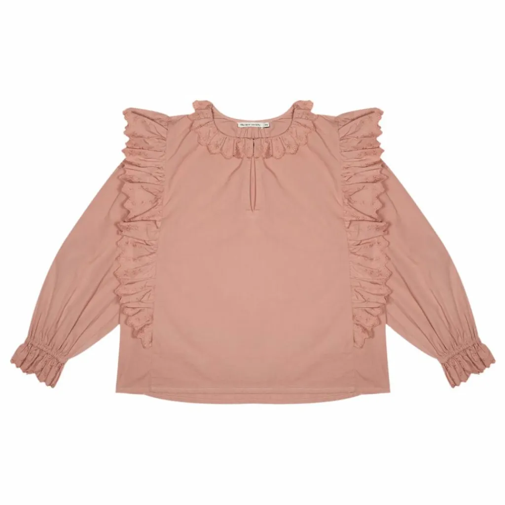 - Empiècement(s) volanté(s), Encolure ronde, Fendu, Manches longues, Poignets élastiqués, Poignets froncés, Poignets volantés, Bordures surpiquées, Col volanté
