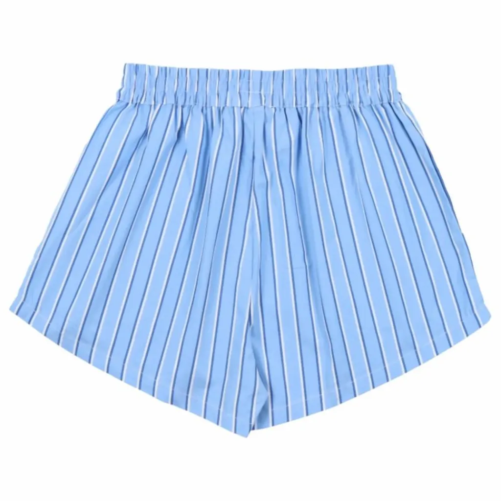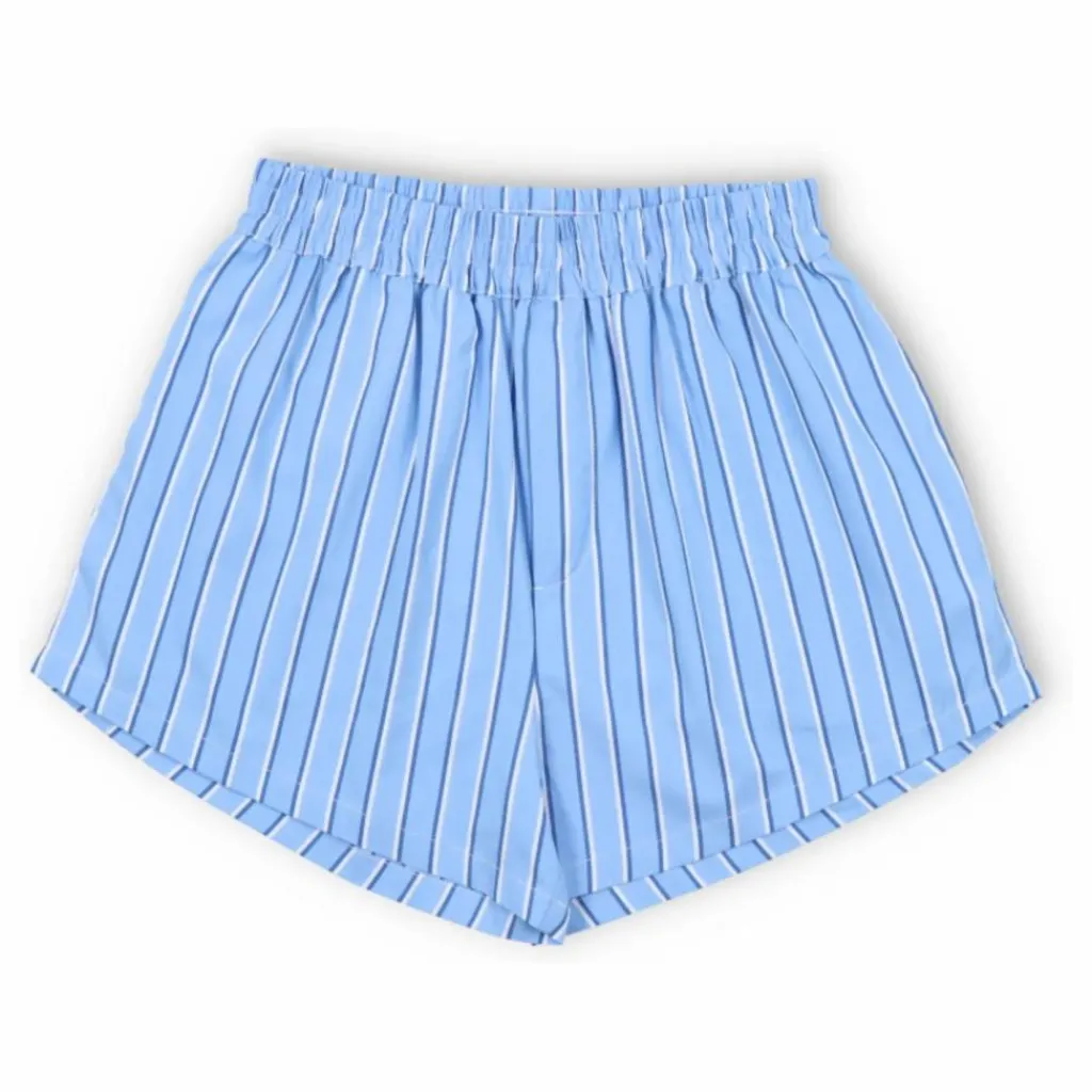 - Short Hebe Teen en tissu rayé 100 % coton avec poches latérales et étiquette centrale The New Society personnalisée.