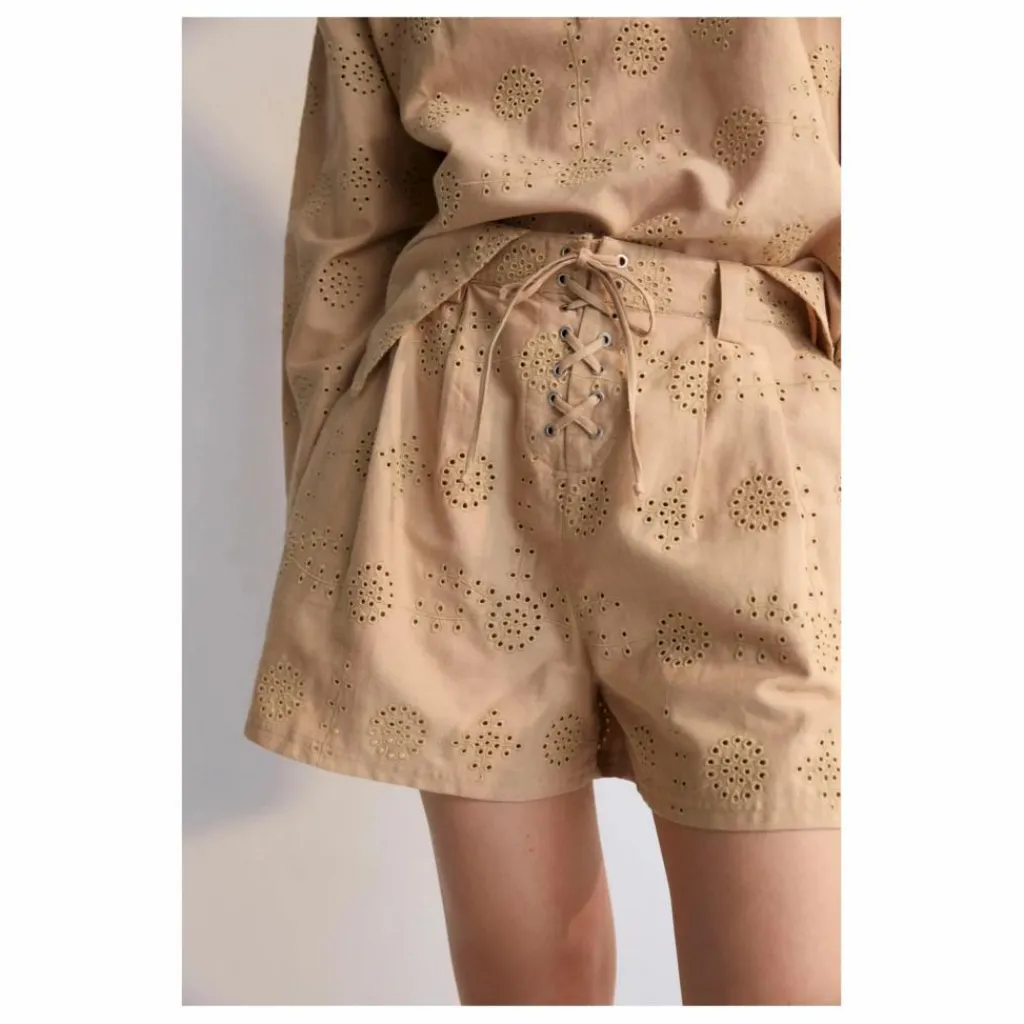 Short avec délicate broderie all-over. Il est doté de boutons griffés et de poches plaquées au dos.