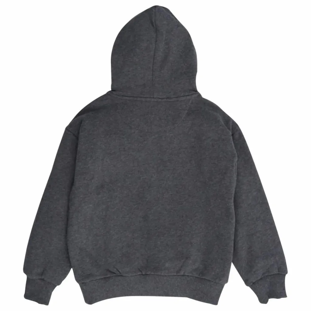 - Sweat à capuche en mélange gris avec impression de marque contrastée sur le devant. Brossé à l’intérieur et à l’extérieur.